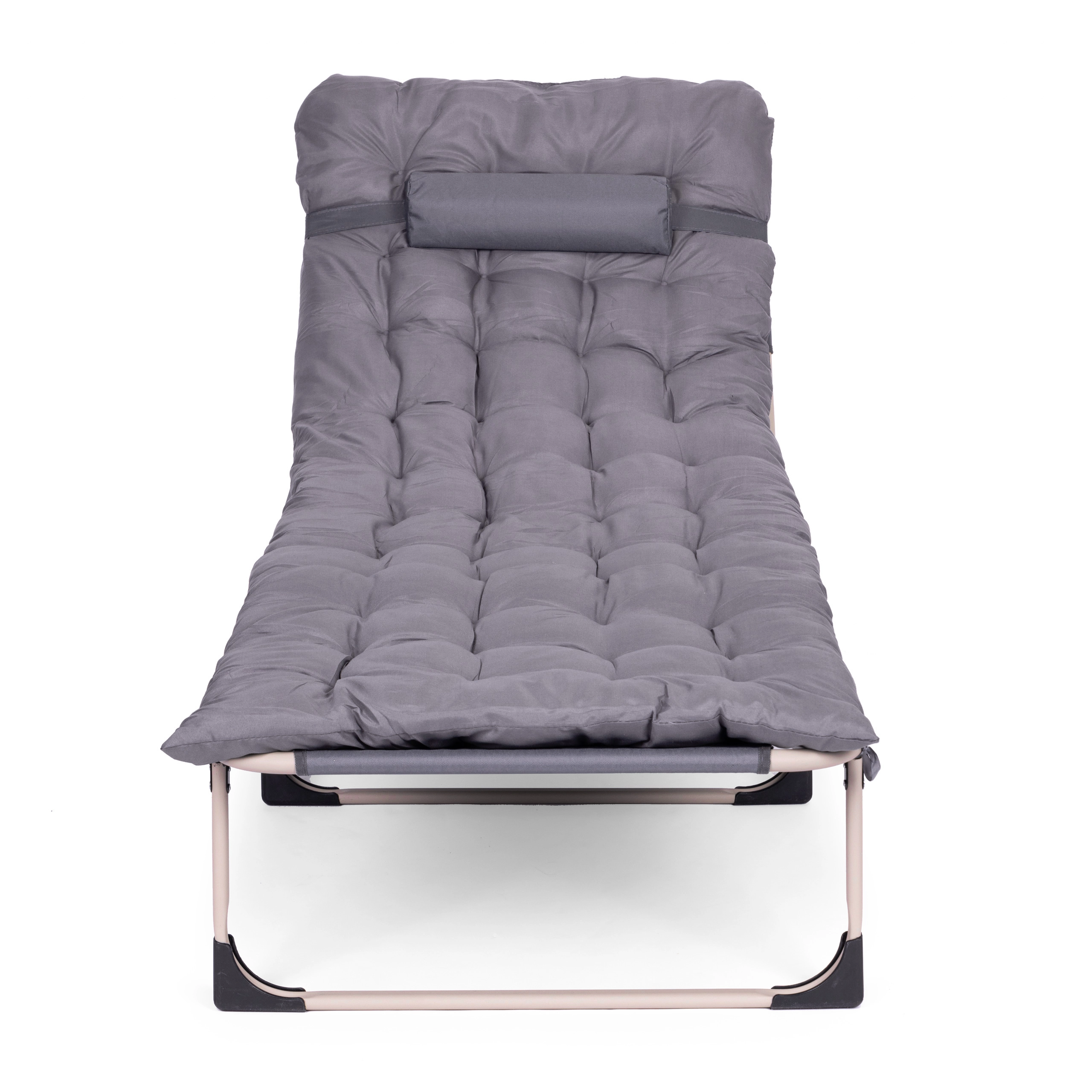 Praktyczny i wygodny leżak do odpoczynku gdziekolwiek – nad wodą, w ogrodzie i na balkonie. Dzięki grubo wyściełanemu materacowi i zintegrowanej poduszce zapewnia całodzienny komfort, a stalowa rama z powłoką proszkową gwarantuje trwałość i stabilność.