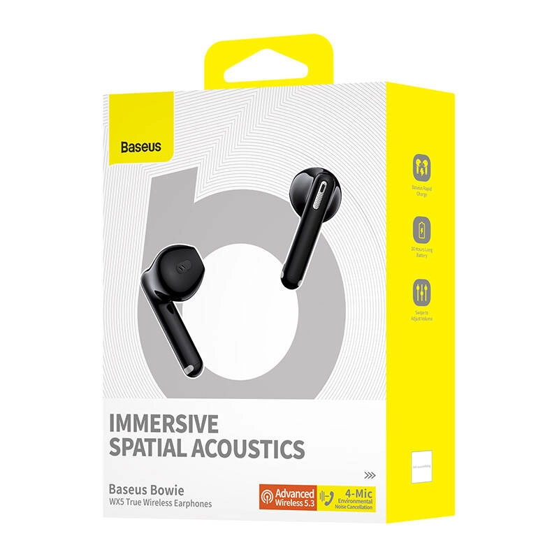 BASEUS Bowie WX5 podnoszą wrażenia z odsłuchu na nowy poziom dzięki przetwornikom 13 mm z bogatym basem, czystą średnicą i wyraźnymi wysokimi tonami. Dwa tryby odtwarzania – Music i Theater – podkreślają detale i przestrzeń, niezależnie od tego, czy słuchasz playlisty, czy oglądasz film.