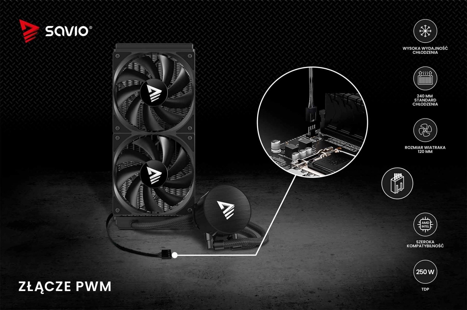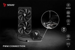 W zestawie znajdują się 2× 120 mm wentylatory PWM z szerokim zakresem prędkości obrotowej dla optymalnego przepływu powietrza i niskiego poziomu hałasu. Sterowanie 4-pin PWM umożliwia automatyczną regulację według temperatury CPU, natomiast zasilanie pompy 3-pin gwarantuje prosty montaż i stabilną pracę.