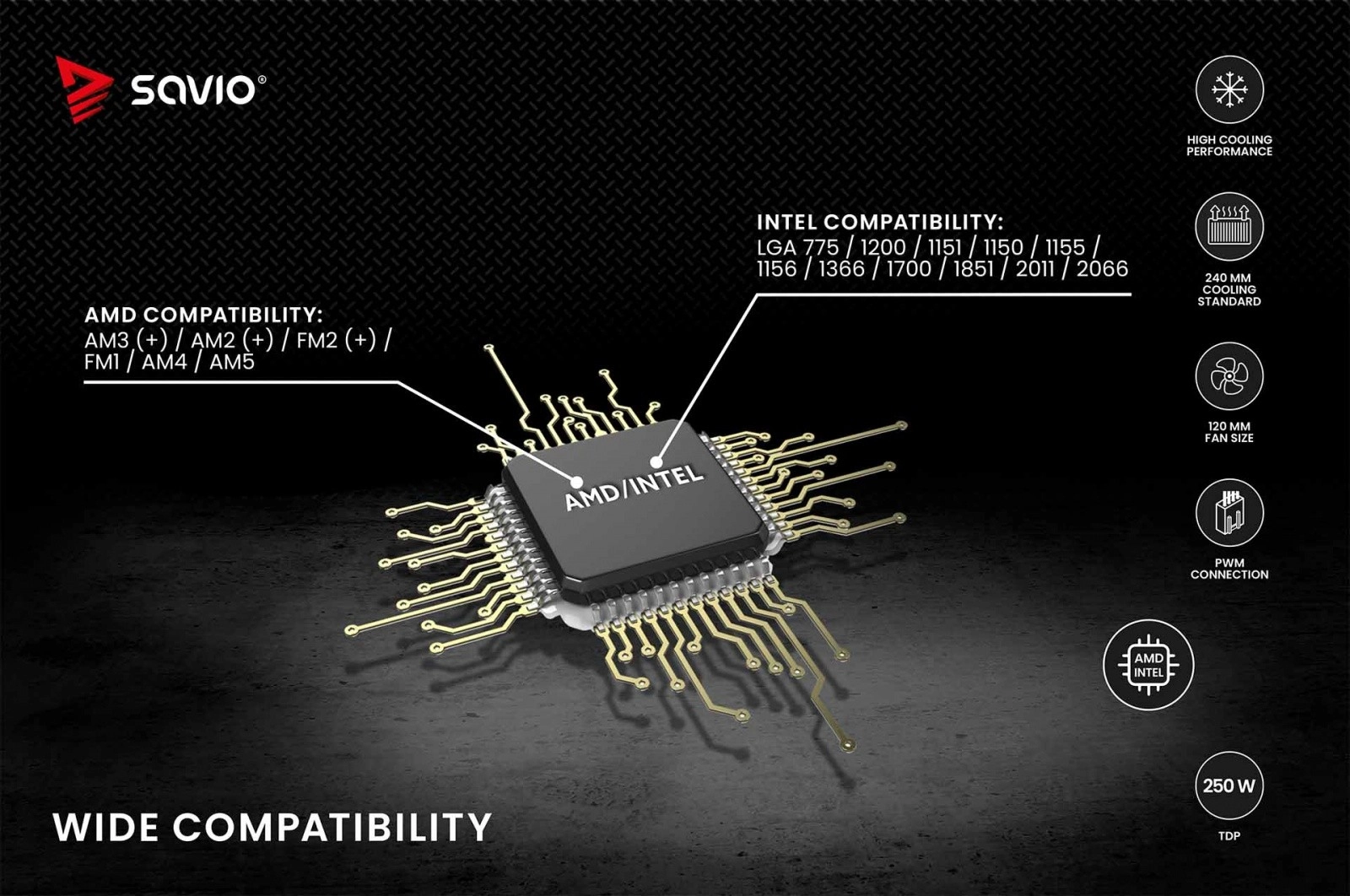 - Szeroka kompatybilność z najpopularniejszymi podstawkami Intel i AMD.