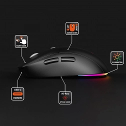Dzięki cichym głównym przyciskom nie przeszkadzasz otoczeniu nawet późno w nocy. Czujnik optyczny z szybkim wyborem DPI 1200/2400/3200 elastycznie przełącza się między precyzyjną grafiką a szybkimi reakcjami w grach. Efekt RGB Rainbow doda Twojemu zestawowi stylu.