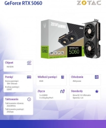 Model ZOTAC GAMING GeForce RTX 5060 AMP łączy nowoczesną wydajność z oszczędnym designem. Nowa architektura NVIDIA Blackwell zwiększa efektywność rasteryzacji i ray tracingu, a technologia DLSS 4 wykorzystuje zaawansowaną AI do podbicia liczby klatek przy zachowaniu detali. Pamięć GDDR7 z magistralą 128-bit zapewnia szybkie transfery danych dla wymagających gier i aplikacji kreatywnych.