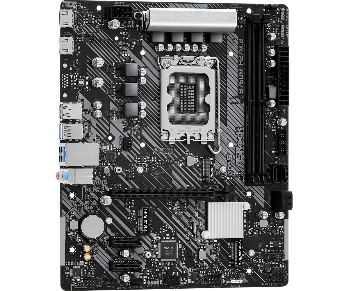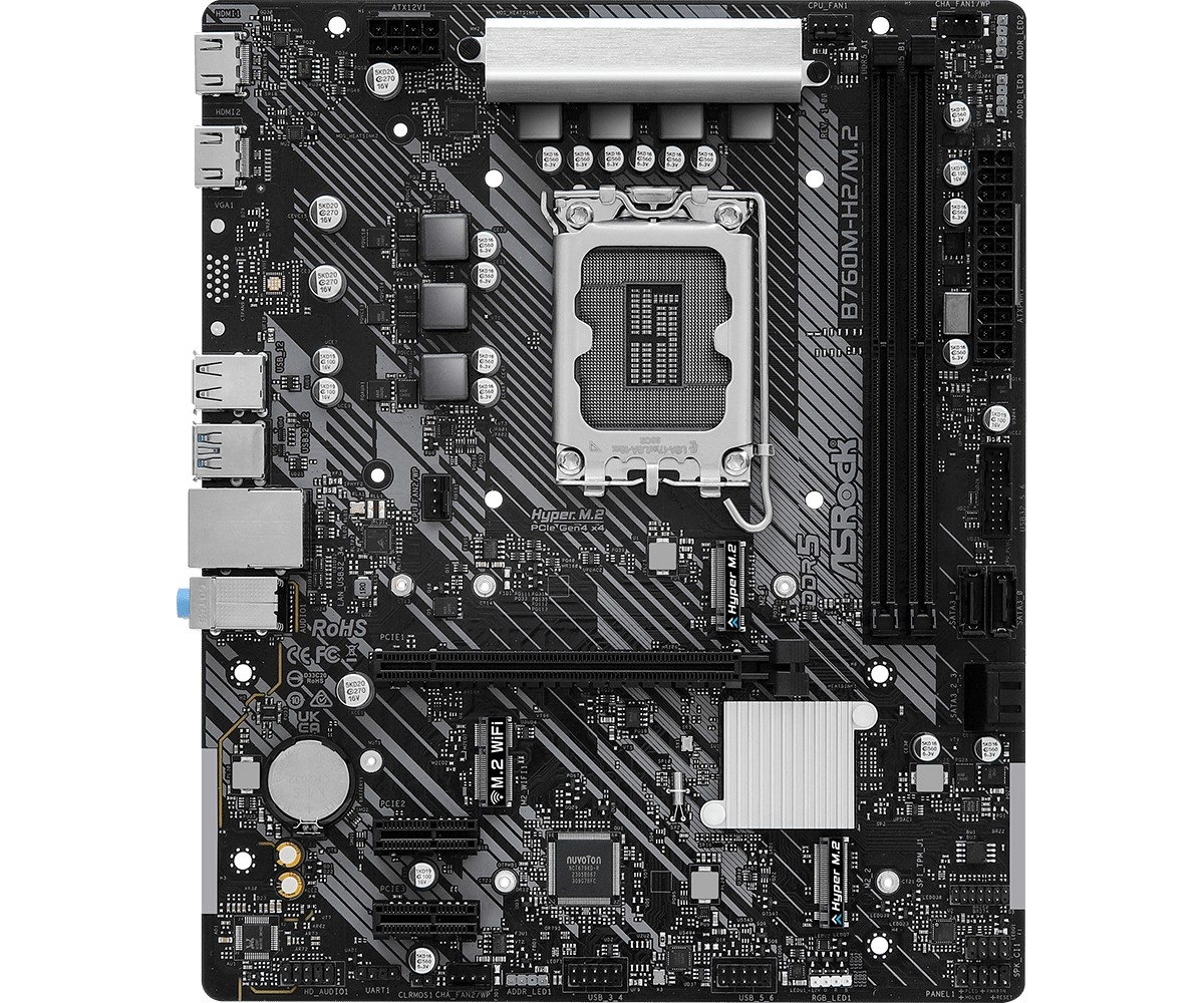 ASRock B760M-H2/M.2 łączy stabilne zasilanie, szybkie magazyny danych i szerokie opcje połączeń w oszczędnym formacie microATX. Wsparcie pamięci DDR5 Dual Channel z taktowaniami do 7200+ (OC) oraz gniazdo PCIe 4.0 x16 dla nowoczesnych kart graficznych zapewniają wysoką wydajność także na przyszłość.