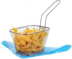 Efektowny koszyk na frytki stanie się ulubionym pomocnikiem przy serwowaniu i przygotowywaniu chrupiących przekąsek. Solidne wykonanie ze stali nierdzewnej gwarantuje długą żywotność i łatwą pielęgnację. Dzięki długiej rączce koszyk pewnie chwycisz i wygodnie wyjmiesz z oleju.
