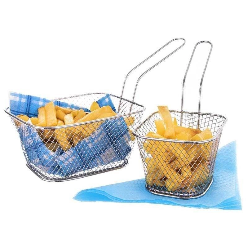 Stylowy i praktyczny koszyk do serwowania frytek, warzyw lub nuggetów z stali nierdzewnej w kolorze srebrnym. Dzięki długiej, wygodnej rączce łatwo się nim operuje i nadaje się zarówno do serwowania, jak i do smażenia mniejszych porcji bezpośrednio w garnku. Świetny wybór dla domu i gastronomii.