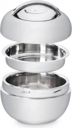 - Trójdzielna: misa, stalowa miska/talerz, pokrywka z uchwytem