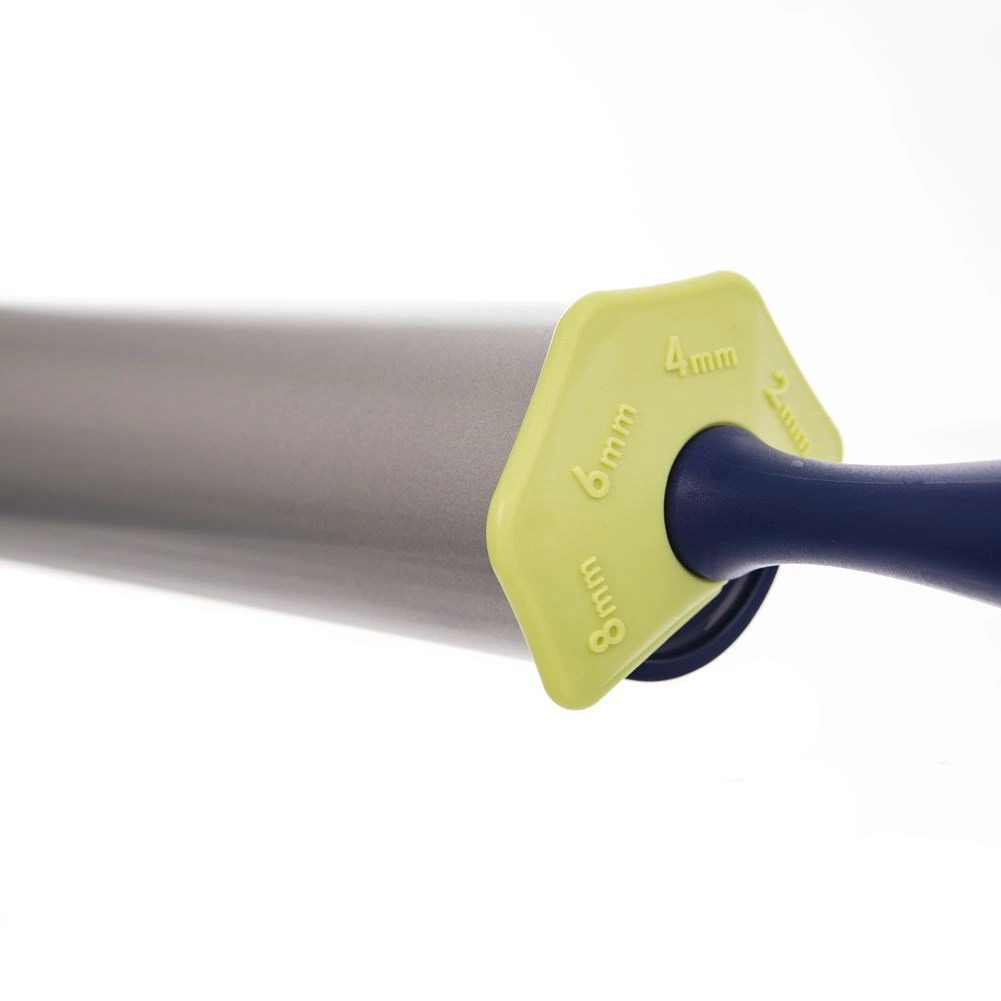 Odkryj łatwe i precyzyjne wałkowanie ciasta. Metalowy wałek z nieprzywierającą powłoką minimalizuje potrzebę użycia mąki i zapobiega przywieraniu. Zdejmowane pierścienie służą jako prowadnice dla czterech dokładnych grubości – 2, 4, 6 i 8 mm, dzięki czemu łatwo przygotujesz ciasteczka, pierniki, tarty, a także ciasto na knedle czy pierożki.