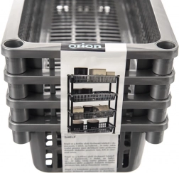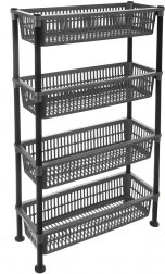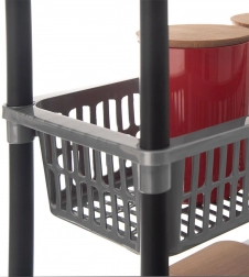 Regał wykonany jest z lekkiej i wytrzymałej konstrukcji plastikowej, która jest odporna na wilgoć i łatwa w czyszczeniu. Szybki montaż bez skomplikowanych narzędzi; w razie potrzeby koszyki można wsunąć jeden w drugi i przechowywać regał w sposób kompaktowy.