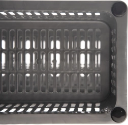 Otwarta, kratkowana konstrukcja zapewnia cyrkulację powietrza, szybkie wysychanie oraz natychmiastowy wgląd w zawartość każdej półki.
