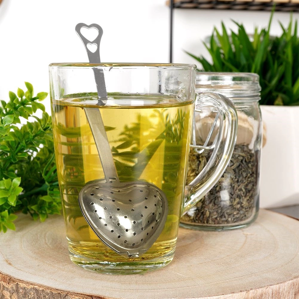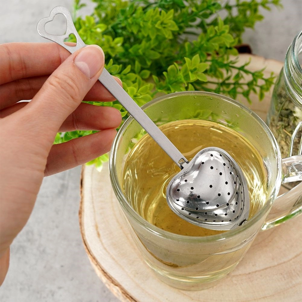 Ciesz się idealnie czystą filiżanką herbaty liściastej dzięki praktycznemu sitku w kształcie serca. Dzięki delikatnej perforacji do napoju nie dostaną się żadne resztki listków, a herbata zachowa pełnię smaku i aromatu. Długa rączka umożliwia wygodne umieszczenie i wyjęcie z kubka bez ryzyka oparzenia.