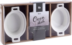 Każda miseczka ma wymiary zewnętrzne 14 × 9 × 4 cm i mieści 120 ml. Są idealne do crème brûlée, soufflé, małych dań zapiekanych, a także na oliwki, orzechy, sosy czy dressingi. Zintegrowane uchwyty gwarantują bezpieczne przenoszenie z piekarnika na stół.