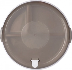 - Plastik bez BPA (białe dno, przezroczysta dymiona pokrywka)