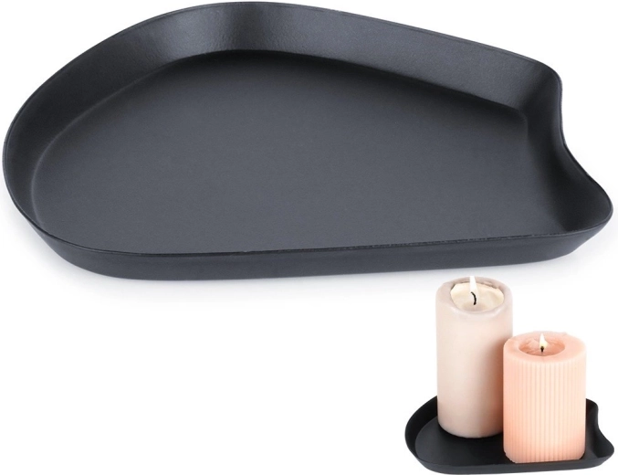 Nieregularny kształt oraz podwyższone krawędzie nadają całości nowoczesny wygląd i jednocześnie chronią powierzchnie – zatrzymują ewentualne krople wosku i zwiększają stabilność ustawionych świec. Doskonale pasuje na stolik kawowy, komodę lub półkę, podkreślając charakter Twojego wnętrza.