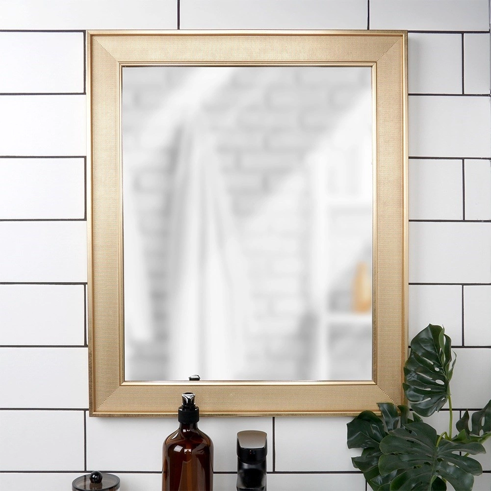 To stylowe lustro ze złotym wykończeniem natychmiast doda wnętrzu szyku oraz optycznie je rozjaśni i powiększy. Dzięki uniwersalnym wymiarom 49,5 × 59,5 cm sprawdzi się w salonie, przedpokoju i sypialni, a także w przestrzeniach komercyjnych, takich jak biura, restauracje czy salony piękności.
