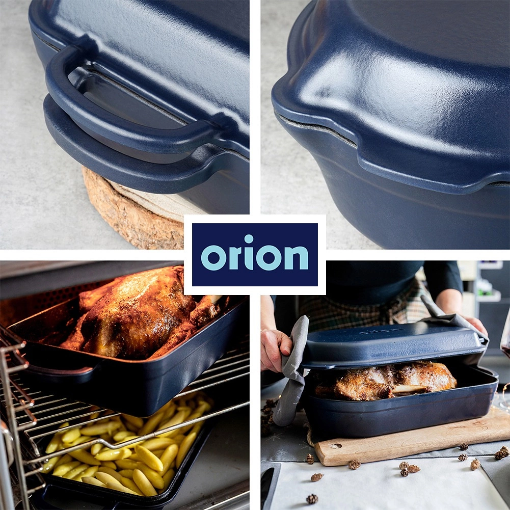 Oryginalny produkt czeskiej marki ORION, wykonany zgodnie z europejskimi standardami jakości. Dzięki wytrzymałej konstrukcji brytfanna jest masywna, trwała i gotowa na codzienne użytkowanie.