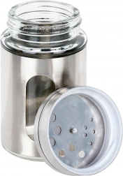 Uniwersalny pojemnik na przyprawy z wytrzymałego szkła z płaszczem i pokrywką ze stali nierdzewnej jest idealny do przypraw, cukru, posypek i ziół. Obrotowa pokrywka oferuje trzystopniową regulację – delikatne sypanie, średnie dozowanie oraz szybkie wsypanie większej ilości. Dzięki przezroczystemu okienku masz zawsze wgląd w zawartość i jej ilość.