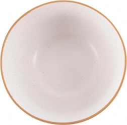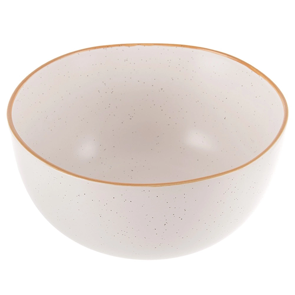 Elegancka beżowa miska o pojemności 1,2 l i średnicy 18 cm wykonana z wysokiej jakości ceramiki ze stylowym nakrapianiem i naturalną, kamienną krawędzią. Doskonała do zup, ramenu, płatków i sałatek, odpowiednia do zmywarki i kuchenki mikrofalowej, a dzięki ponadczasowemu wzornictwu pięknie uzupełni codzienny i odświętny stół.