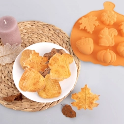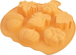 Ta wysokiej jakości silikonowa forma z motywami liści, dyni, żołędzia i wiewiórki nada Twoim ciasteczkom, muffinkom lub pralinkom atrakcyjny jesienny wygląd. Wymiary formy 26 × 25 × 3 cm, a wgłębienia ok. 6,5 × 6 cm zapewniają ładnie uformowane i równomiernie upieczone desery.