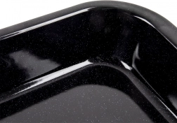 Emaliowana blacha do pieczenia to niezastąpiony pomocnik w każdej kuchni. Dzięki trwałej stali z gładką, błyszczącą warstwą emalii doskonale znosi wysokie temperatury, jest odporna na zarysowania i łatwa w czyszczeniu. Świetnie nadaje się do mięs, zapiekanek, warzyw, ziemniaków, pizzy oraz do ciast, ciasteczek i pieczywa.