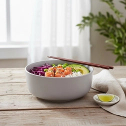 Głębszy kształt i pojemność 830 ml świetnie sprawdzą się do treściwych zup, misek ryżowych oraz mieszanek śniadaniowych.