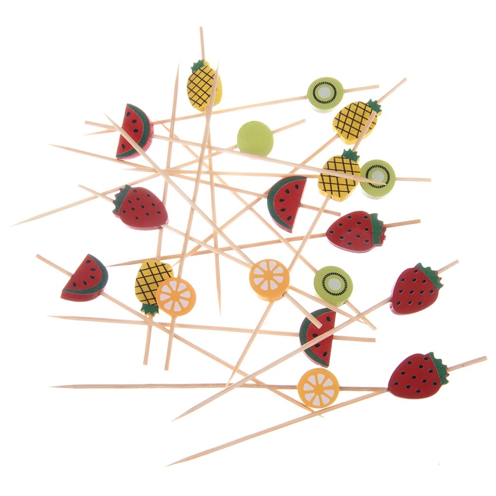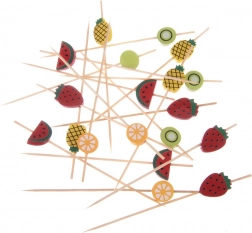 Każdą wykałaczkę zdobi oryginalny owocowy topper, który nadaje poczęstunkowi figlarny wygląd i podkreśla prezentację kanapek, serów czy owoców.