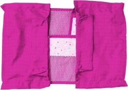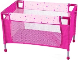 Różowe łóżeczko z metalową ramą jest idealne do zabawy w domu i na zewnątrz. Jest przenośne i lekkie.