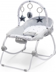 Leżaczek BABY MIX zaprojektowano dla najmłodszych i starszych dzieci: jako leżaczek odpowiedni do 9 kg, jako fotelik aż do 18 kg. Zintegrowany panel zapewnia wibracje, muzykę i efekty świetlne, które uspokajają i zajmują maluszka. Praktyczny zdejmowany pałąk z trzema zabawkami stymuluje zmysł wzroku i dotyku, a oparcie z dwiema pozycjami ułatwia dopasowanie do snu i zabawy.