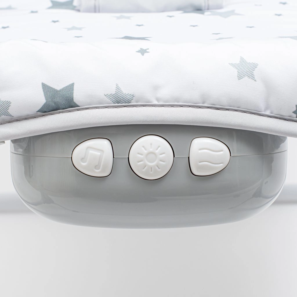 Zintegrowany panel oferuje połączenie delikatnych wibracji, kojących melodii i efektów świetlnych, które ułatwiają zasypianie i spokojny odpoczynek maluszka.