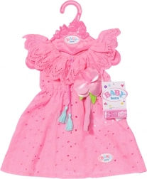 Sukienka w różowym odcieniu z marszczonym kołnierzykiem, ozdobnymi sznureczkami i frędzelkami nadaje każdej lalce BABY born subtelny wygląd.