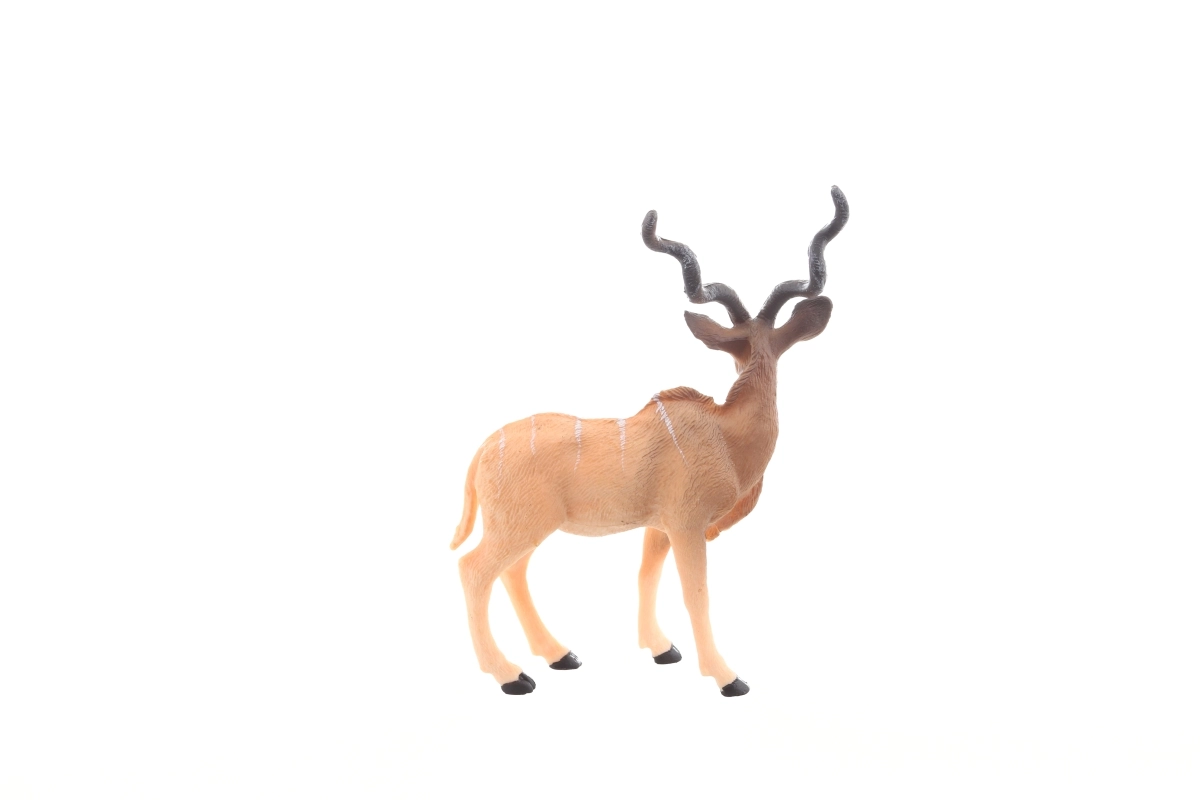 Detaliczny model z typowymi spiralnymi rogami, paskami na ciele i staranną teksturą sierści wspiera wyobraźnię dzieci.