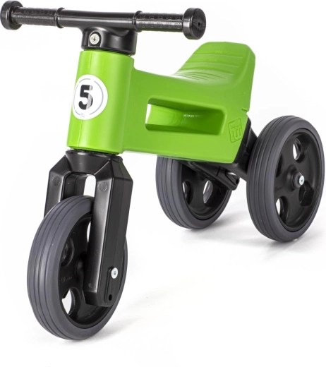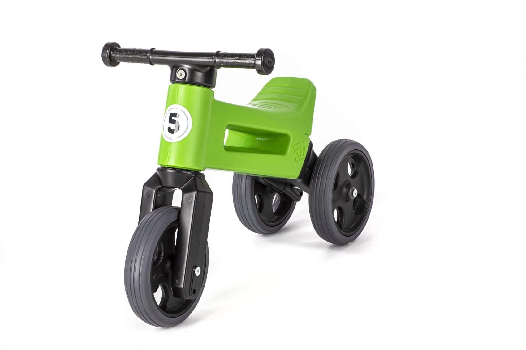 Lekki i wytrzymały jeździk Funny Wheels Rider Sport 2w1 rośnie razem z dzieckiem: w kilka chwil przekształcisz go z trójkołowego w dwukołowy, oferuje dwie wysokości siodełka, ciche, antypoślizgowe opony oraz bezpieczną konstrukcję dla małych jeźdźców od 18 miesięcy.
