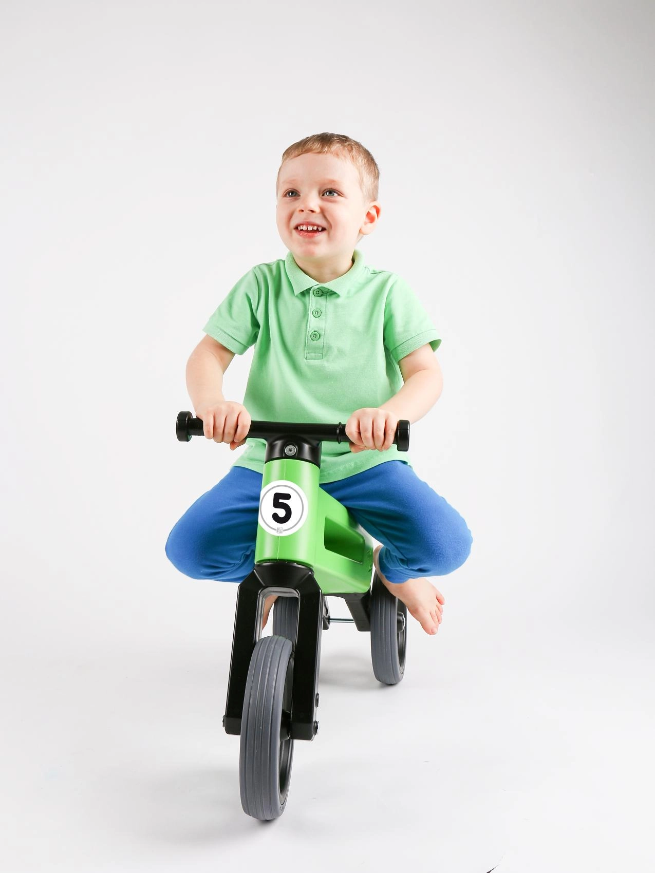 Zacznij od stabilnego trójkołowca, a później przejdź na dwukołowy jeździk, aby ćwiczyć równowagę. Wszystko, czego potrzebujesz, znajdziesz w zestawie.