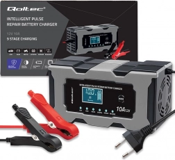 9‑stopniowy cykl ładowania obejmuje detekcję, desulfatację, miękki start, główne ładowanie prądem stałym, absorpcję przy stałym napięciu, kroki regeneracyjne, ładowanie podtrzymujące, długoterminową konserwację oraz bezpieczne wyłączenie. Dostępny jest tryb repair – około 16‑godzinny proces regeneracji dla zasiarczonych lub długotrwale rozładowanych baterii o bardzo niskim napięciu. Wyświetlacz LCD przejrzyście pokazuje napięcie, prąd i wybrany tryb, dzięki czemu masz pełną kontrolę nad stanem akumulatora.
