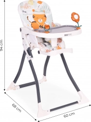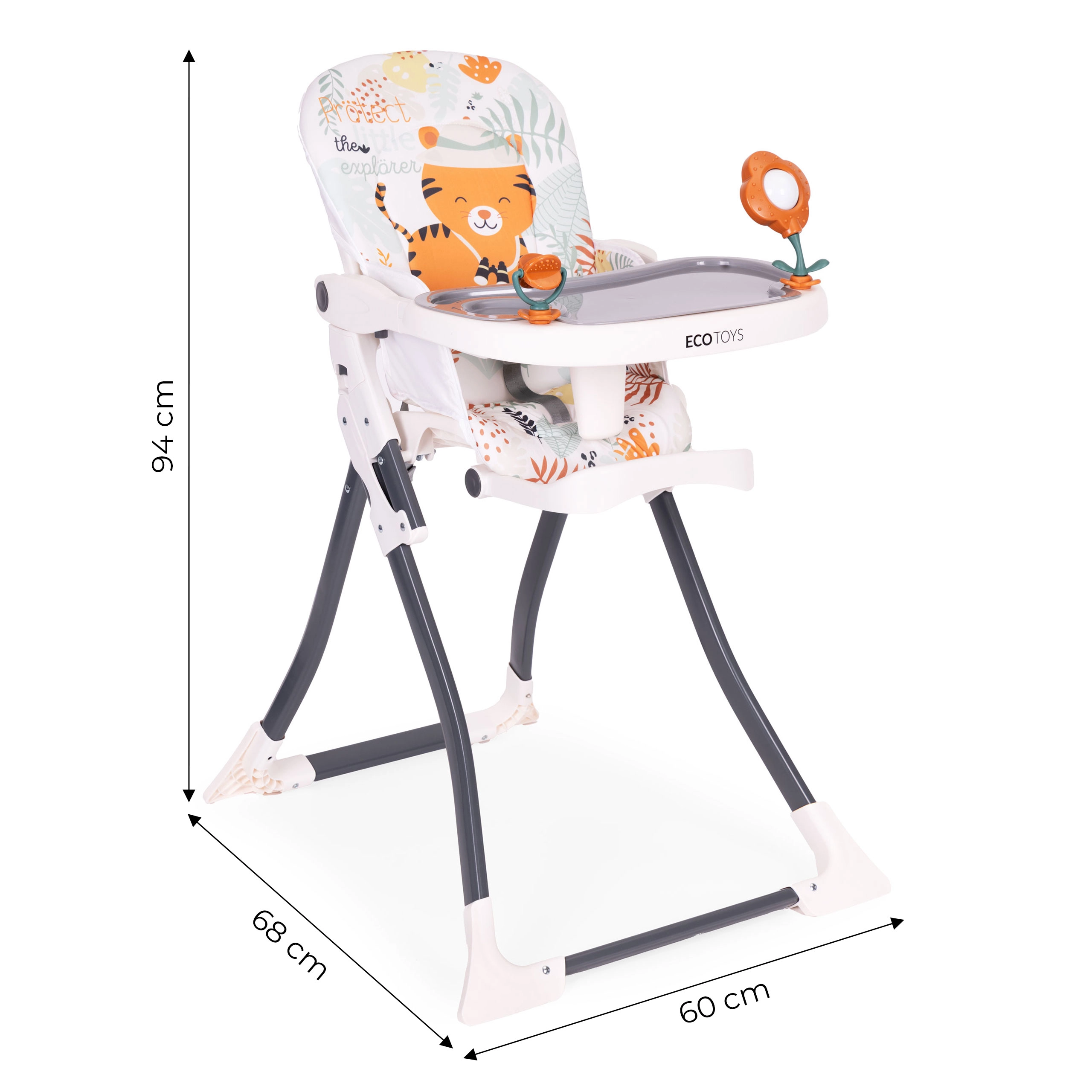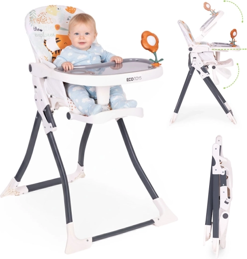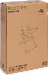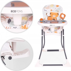 Krzesełko do karmienia ECOTOYS ułatwia wspólne posiłki i pierwsze próby samodzielnego jedzenia. Szeroka tacka oferuje dużo miejsca na talerzyk oraz zabawę i stymulację sensoryczną dzięki wbudowanym zabawkom. Zdejmowany pokrowiec z elastanu i podwójna tacka z górną, demontowalną warstwą zapewniają szybkie czyszczenie.
