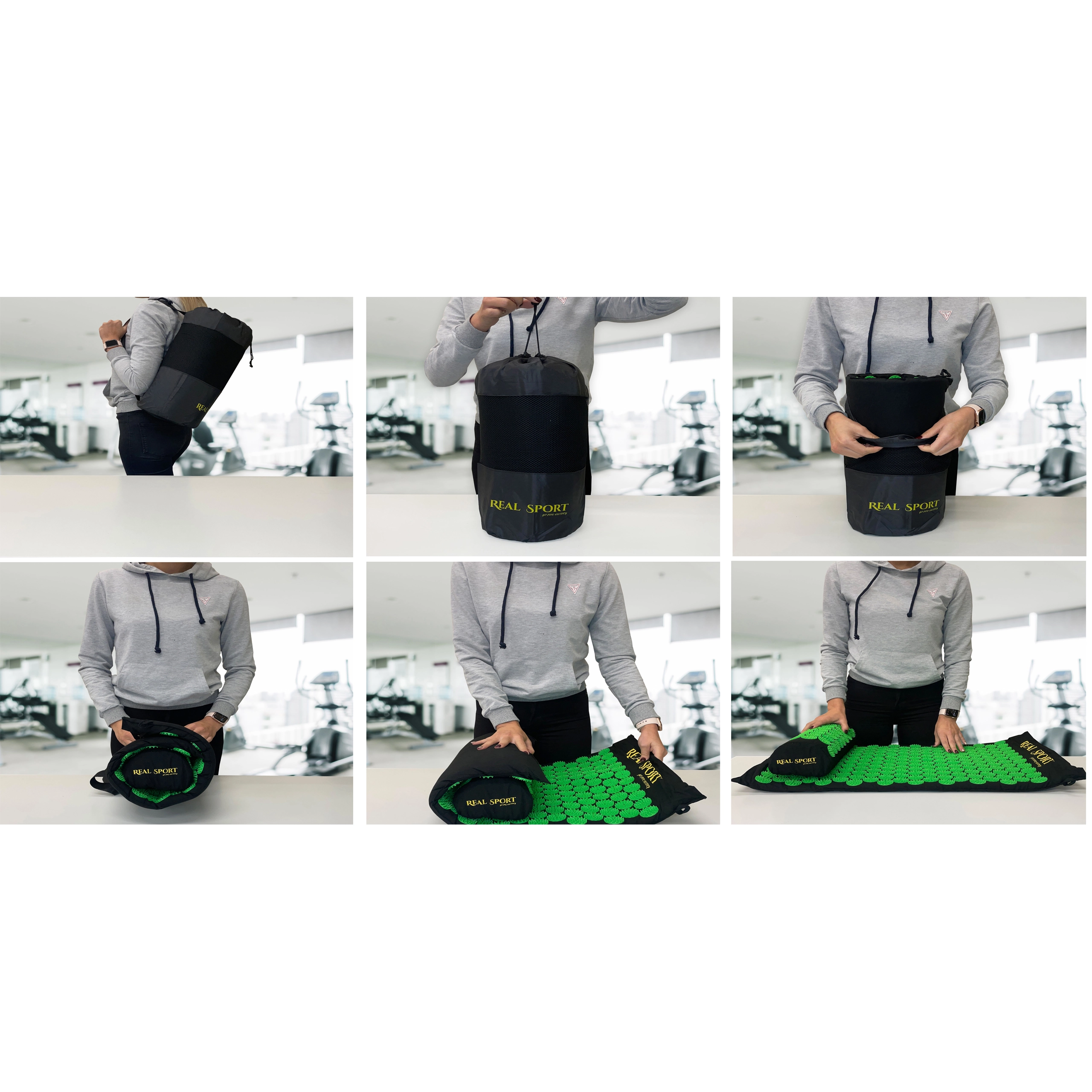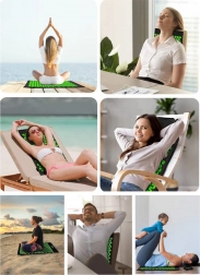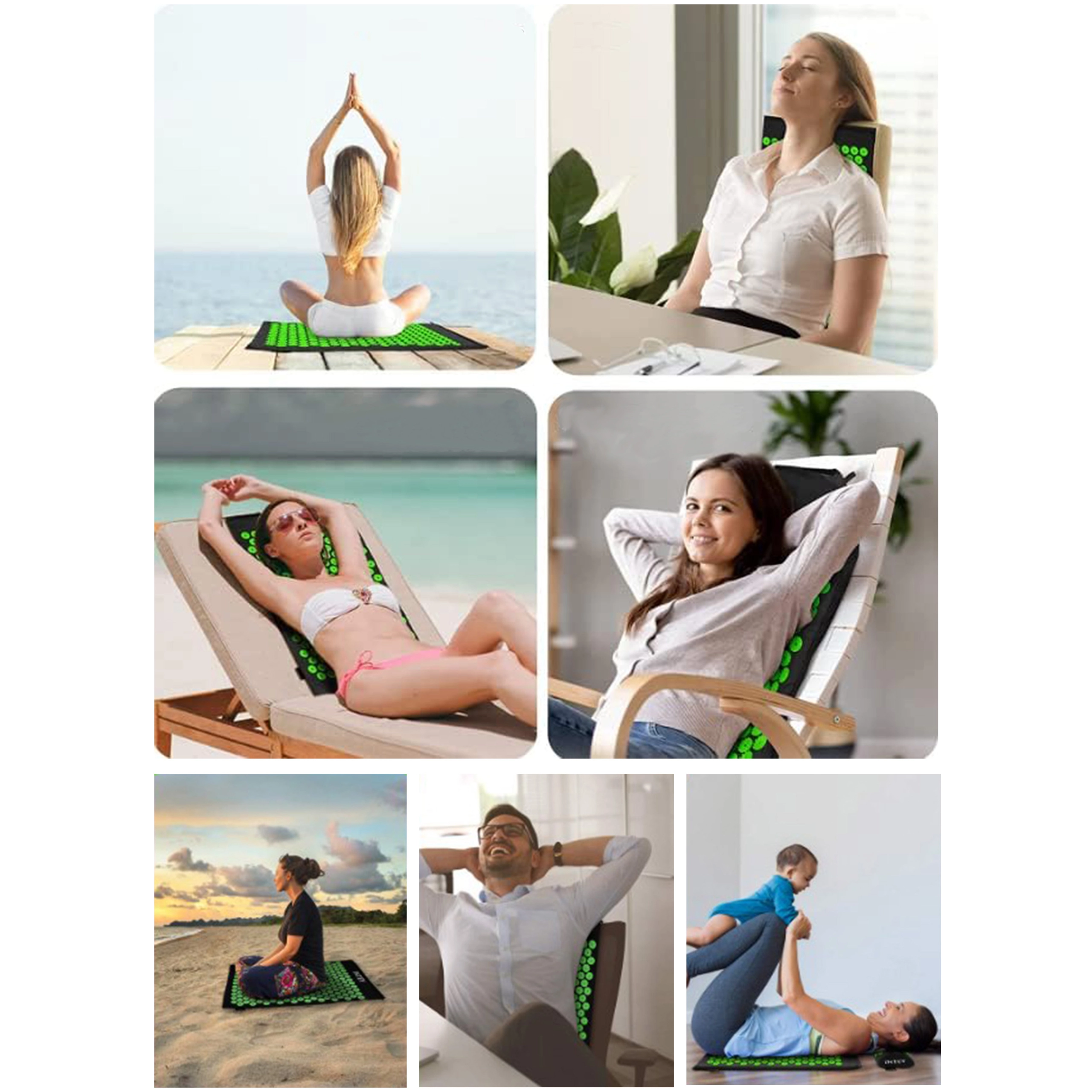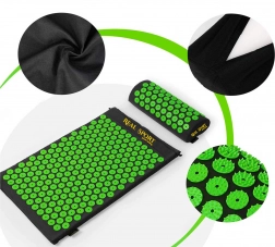 Zestaw akupresurowy (mata + poduszka) naśladuje działanie tradycyjnej akupresury i pomaga złagodzić napięcie pleców, szyi i barków. Dziesiątki zielonych dysków z kolcami działają na punkty uciskowe, wspierając rozluźnienie, regenerację mięśni i naturalne ukrwienie. Dzięki lekkiej konstrukcji i pokrowcowi łatwo zabierzesz ją do domu, biura i w podróż.