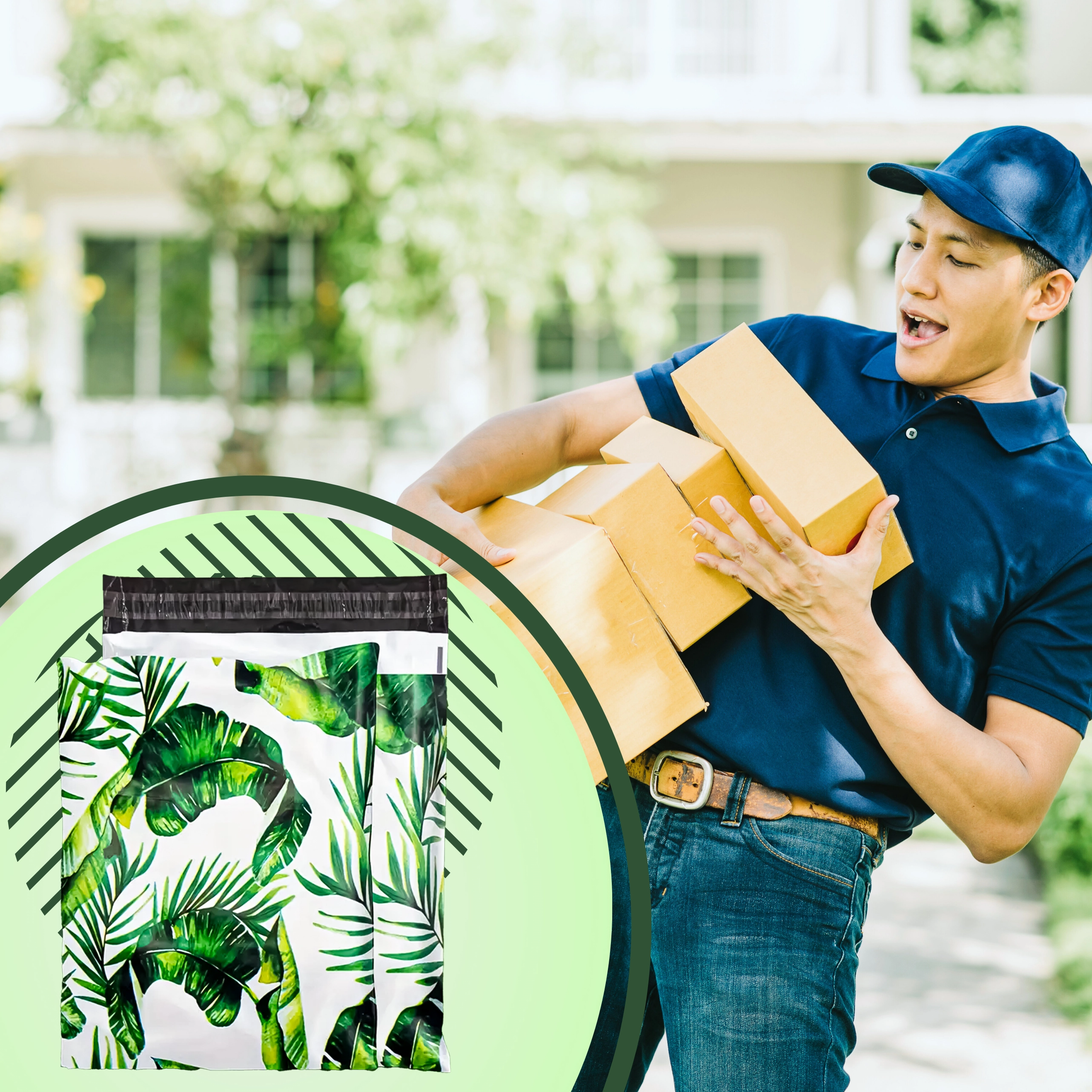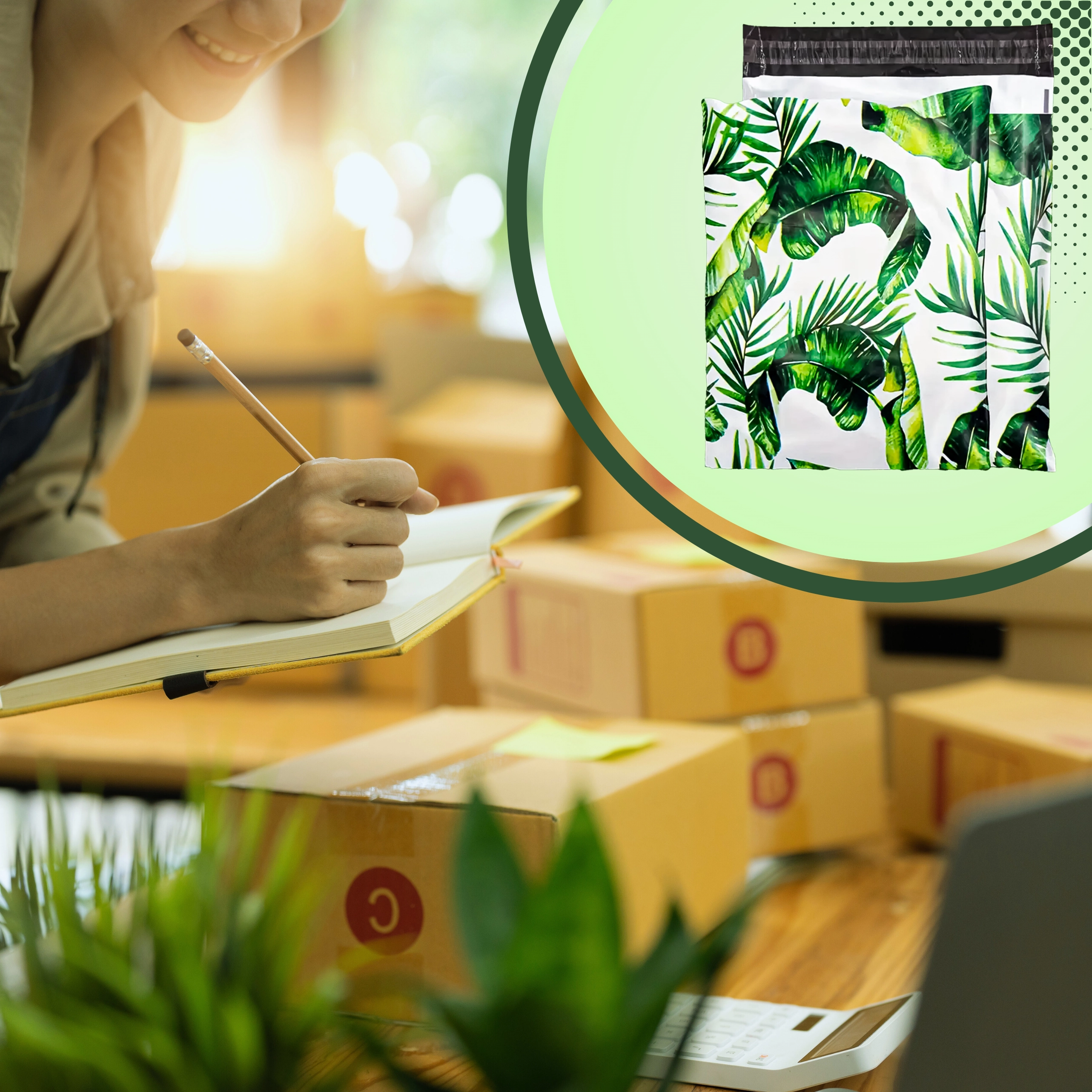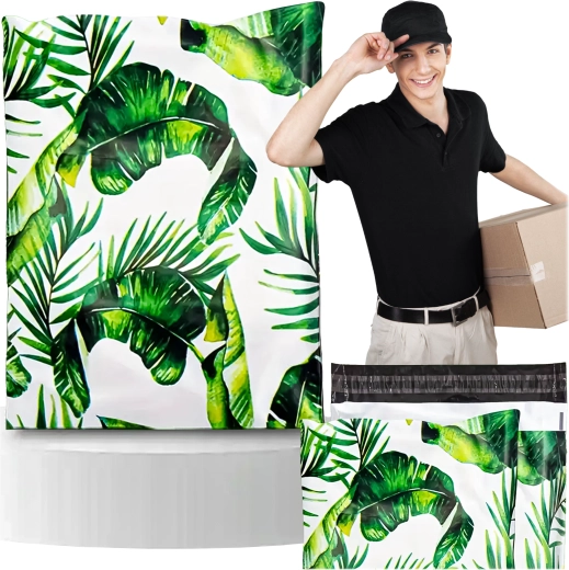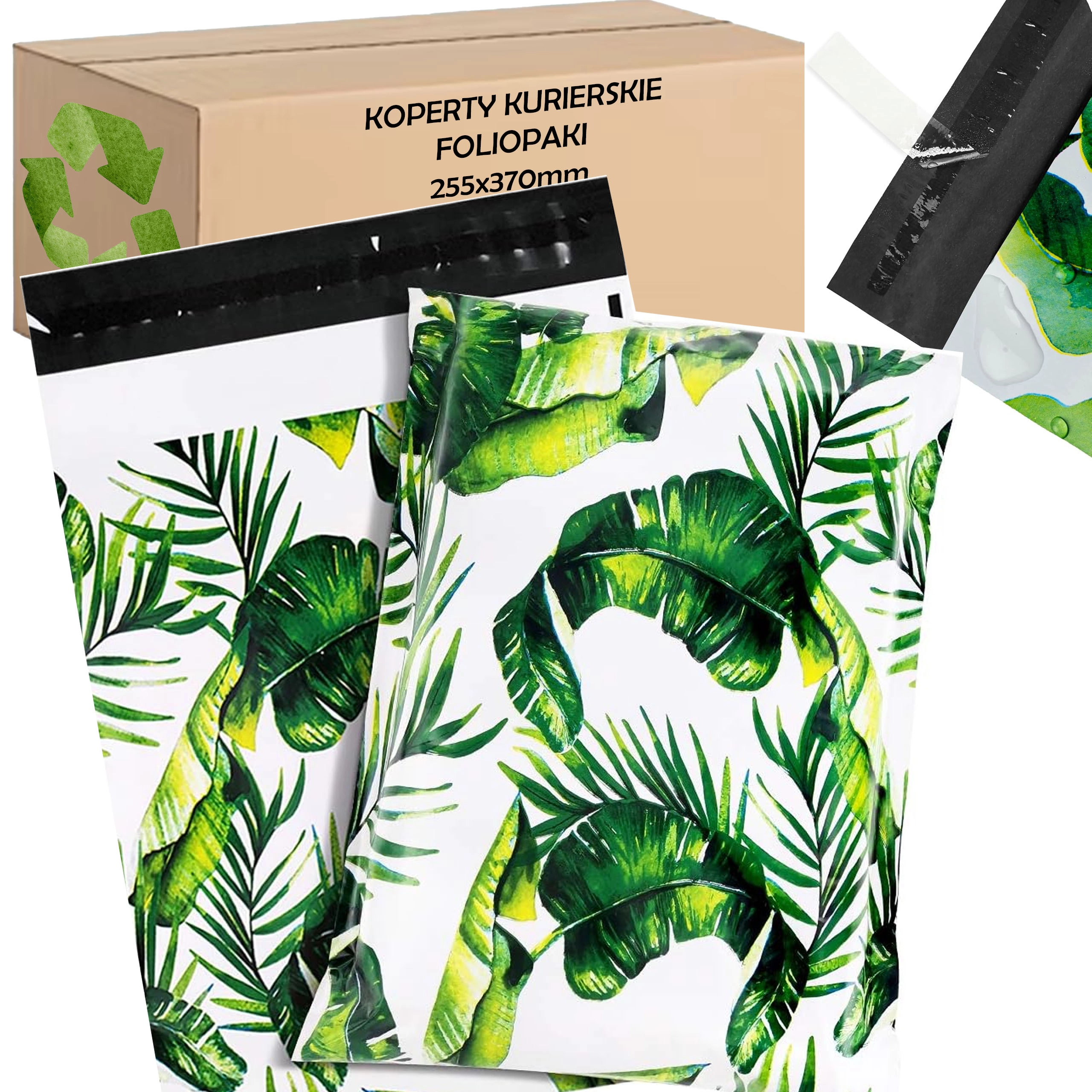 Szukasz niezawodnego i atrakcyjnego opakowania dla e‑sklepu lub przesyłek domowych? Te polimailery z motywem zielonych liści łączą wytrzymałość, niską masę i profesjonalny wygląd. Wymiar 255 × 370 mm jest idealny dla tekstyliów, akcesoriów, druków i innych lżejszych produktów.