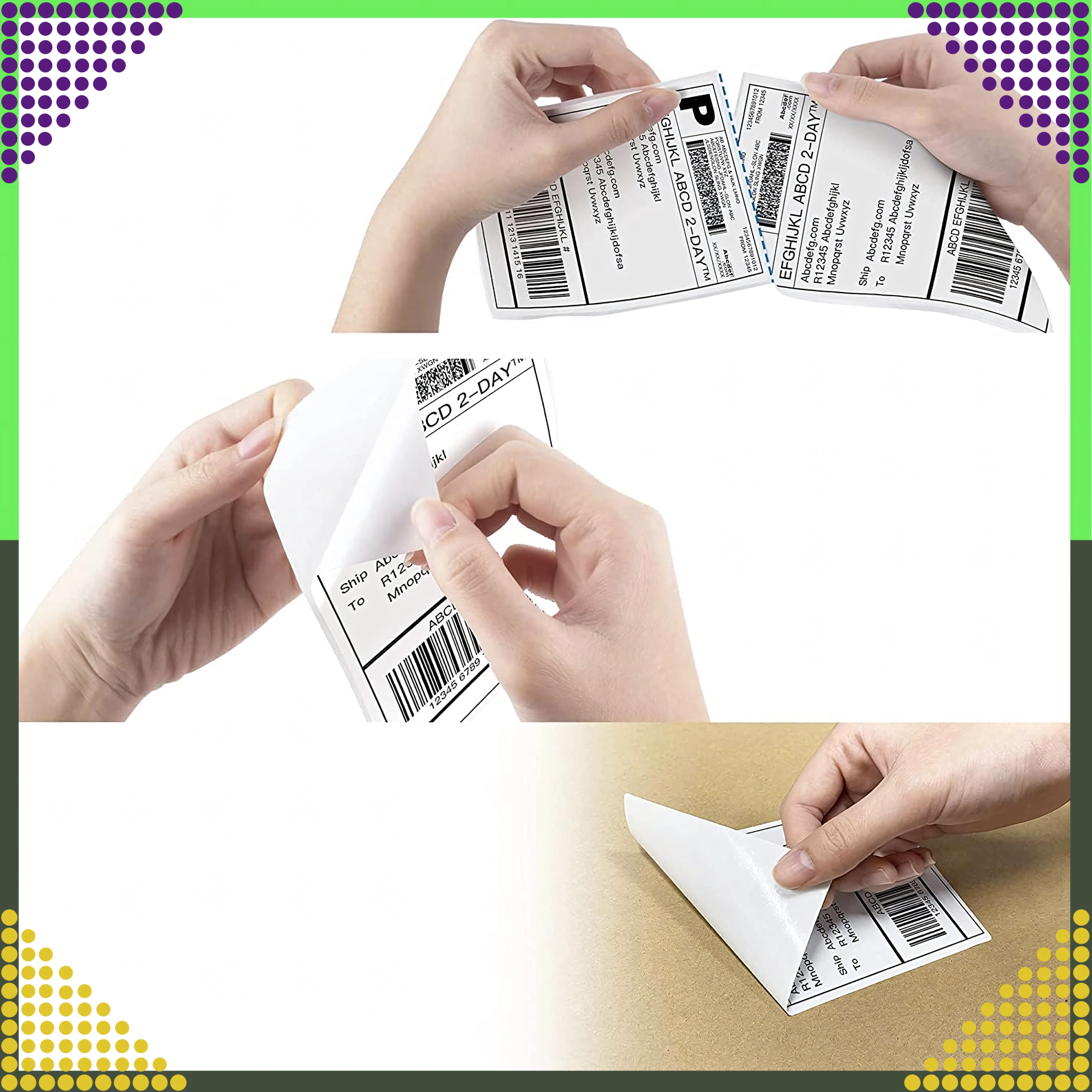 Perforacja między etykietami przyspiesza pracę podczas pakowania i pomaga utrzymać etykiety w nienaruszonym stanie i w linii.