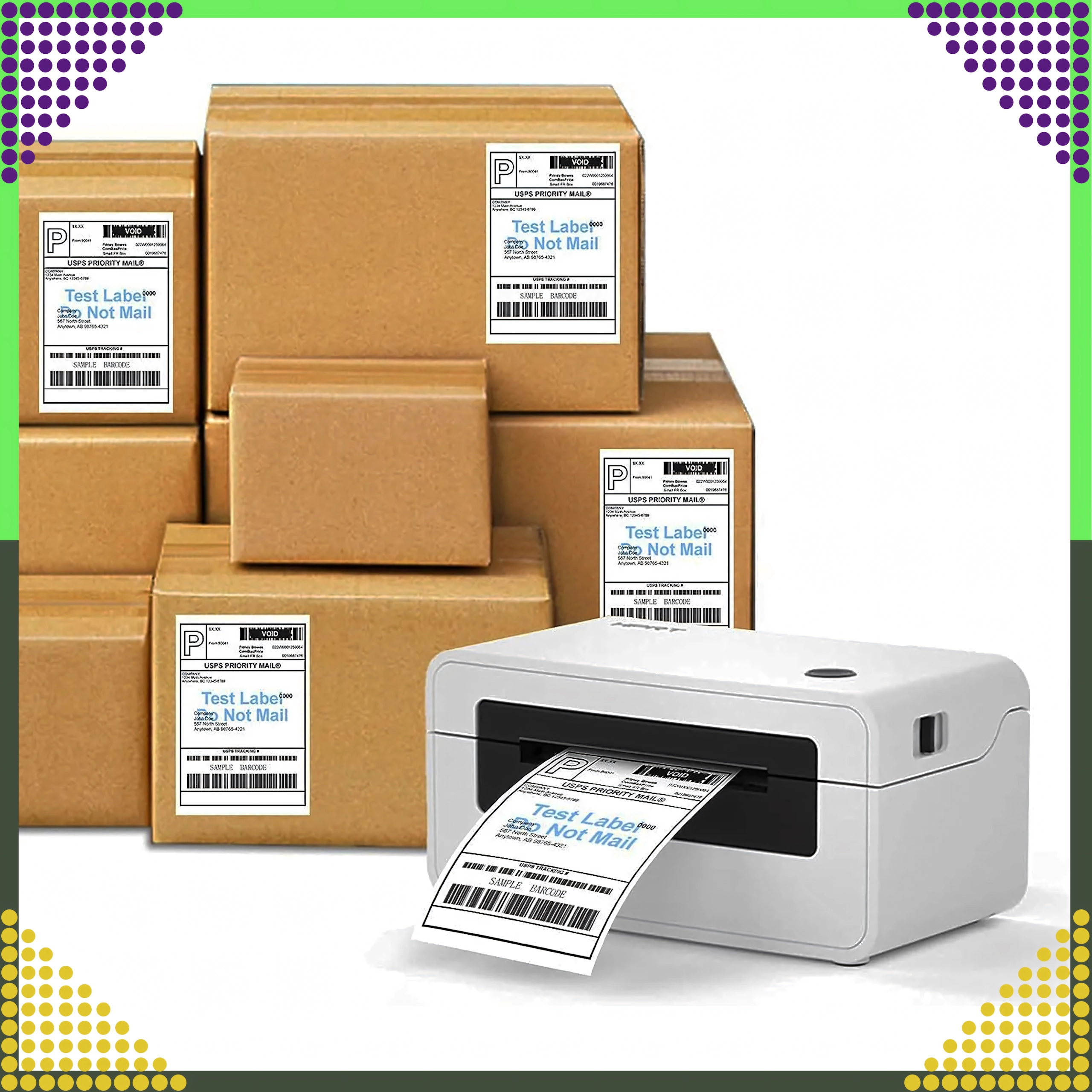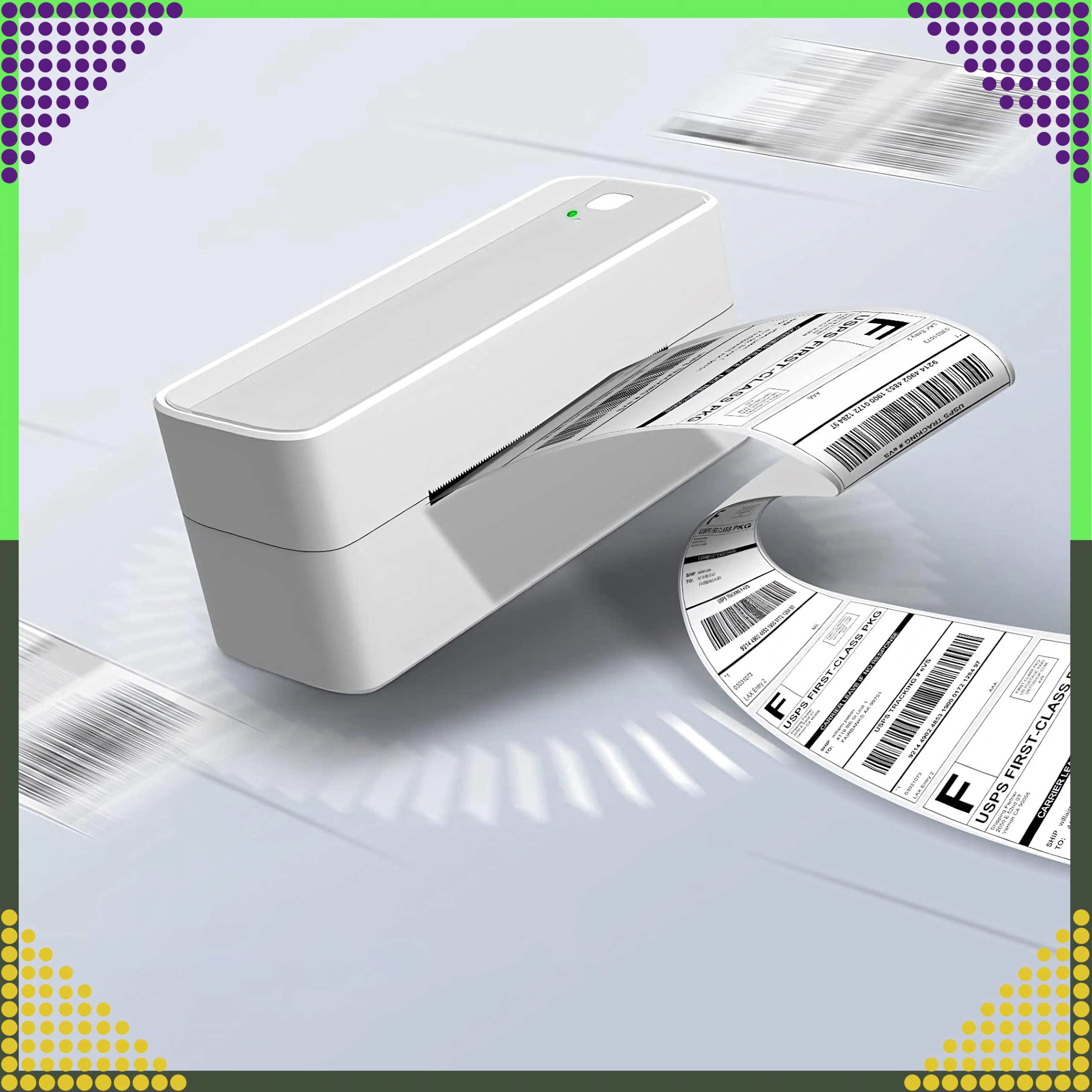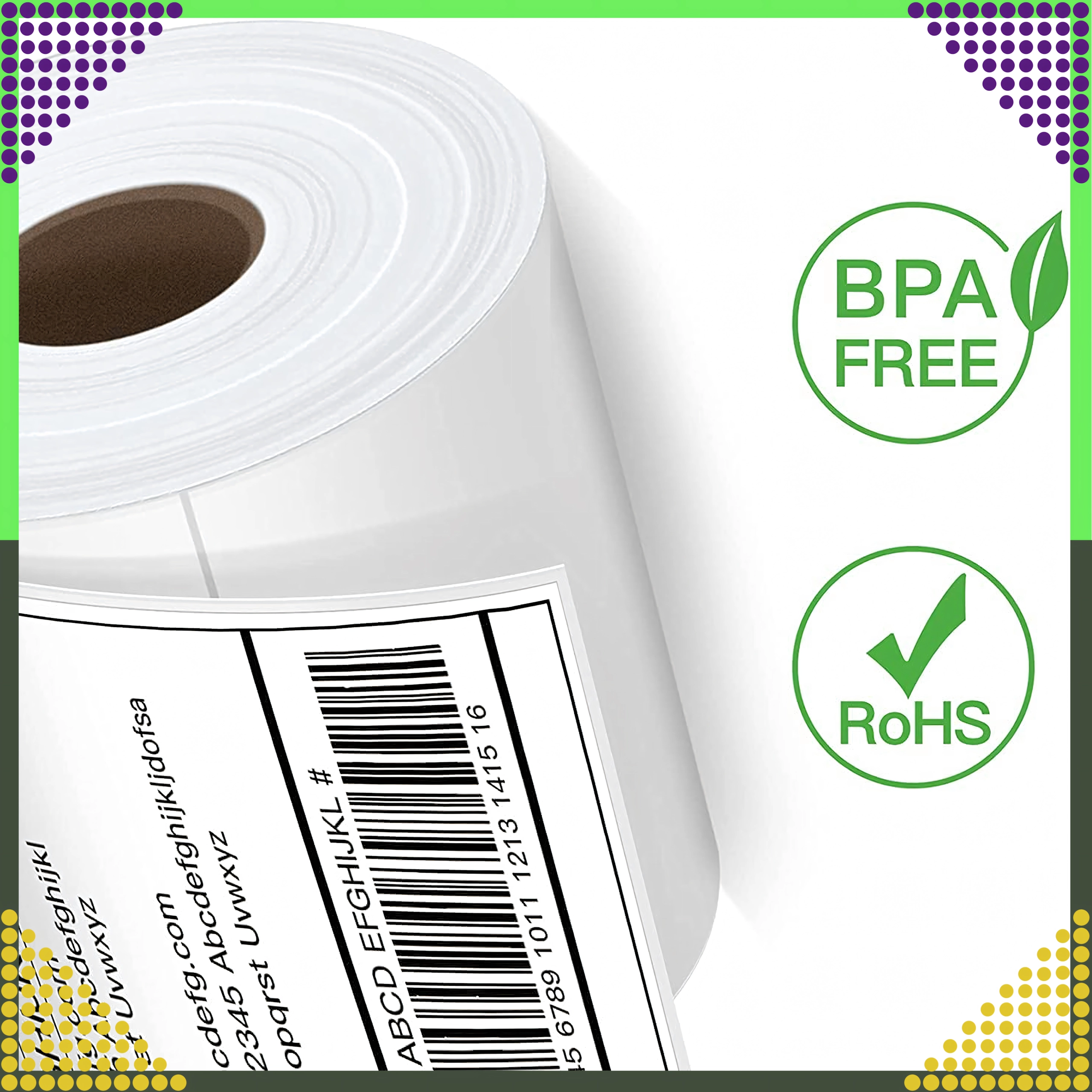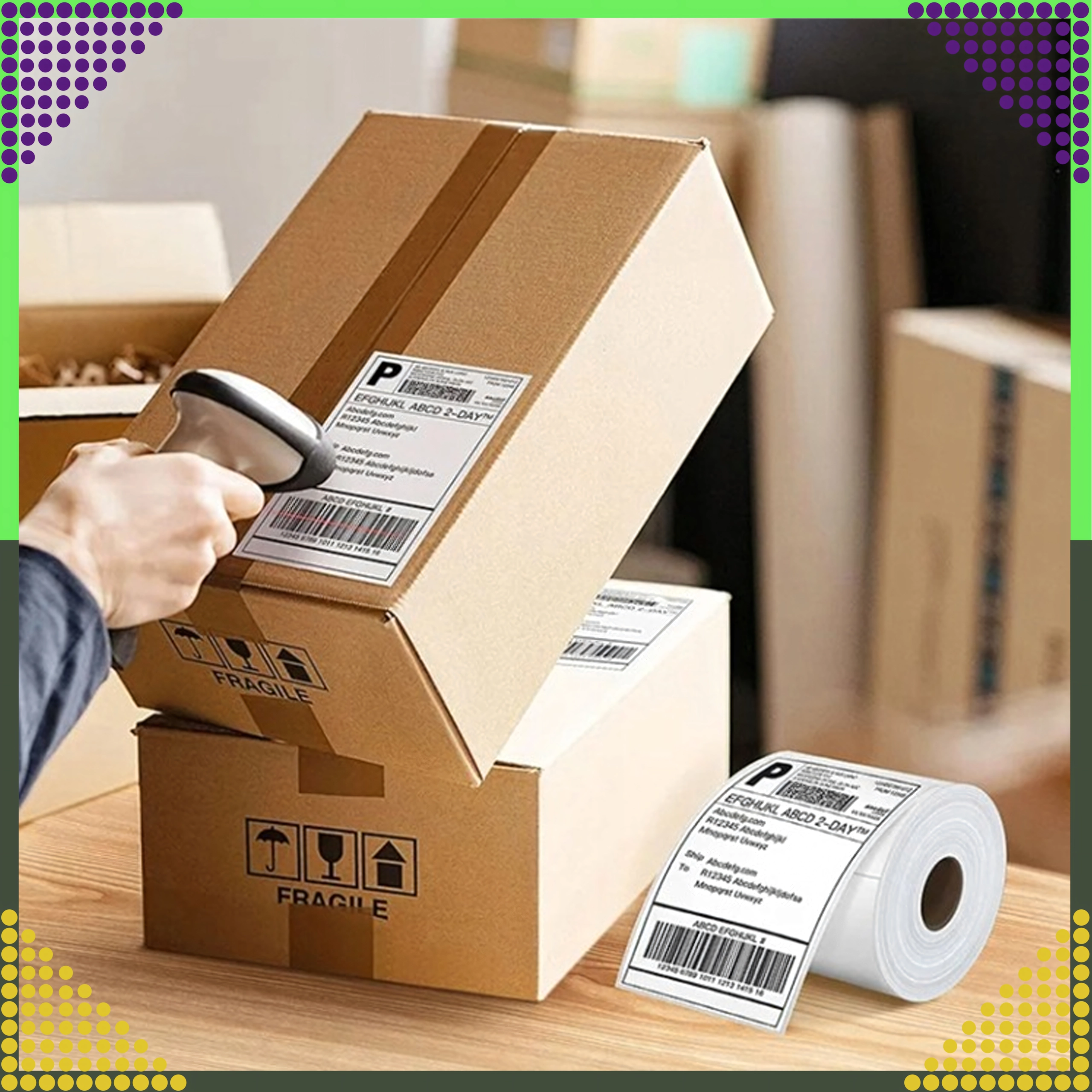 Standardowy format używany przez przewoźników do etykiet adresowych i logistycznych, odpowiedni do magazynów, e‑sklepów i linii produkcyjnych.