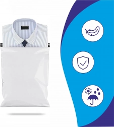 Nieprzezroczyste białe wykończenie chroni prywatność zawartości i wygląda czysto oraz profesjonalnie. Doskonałe do tekstyliów, akcesoriów i mniejszych pudełek.