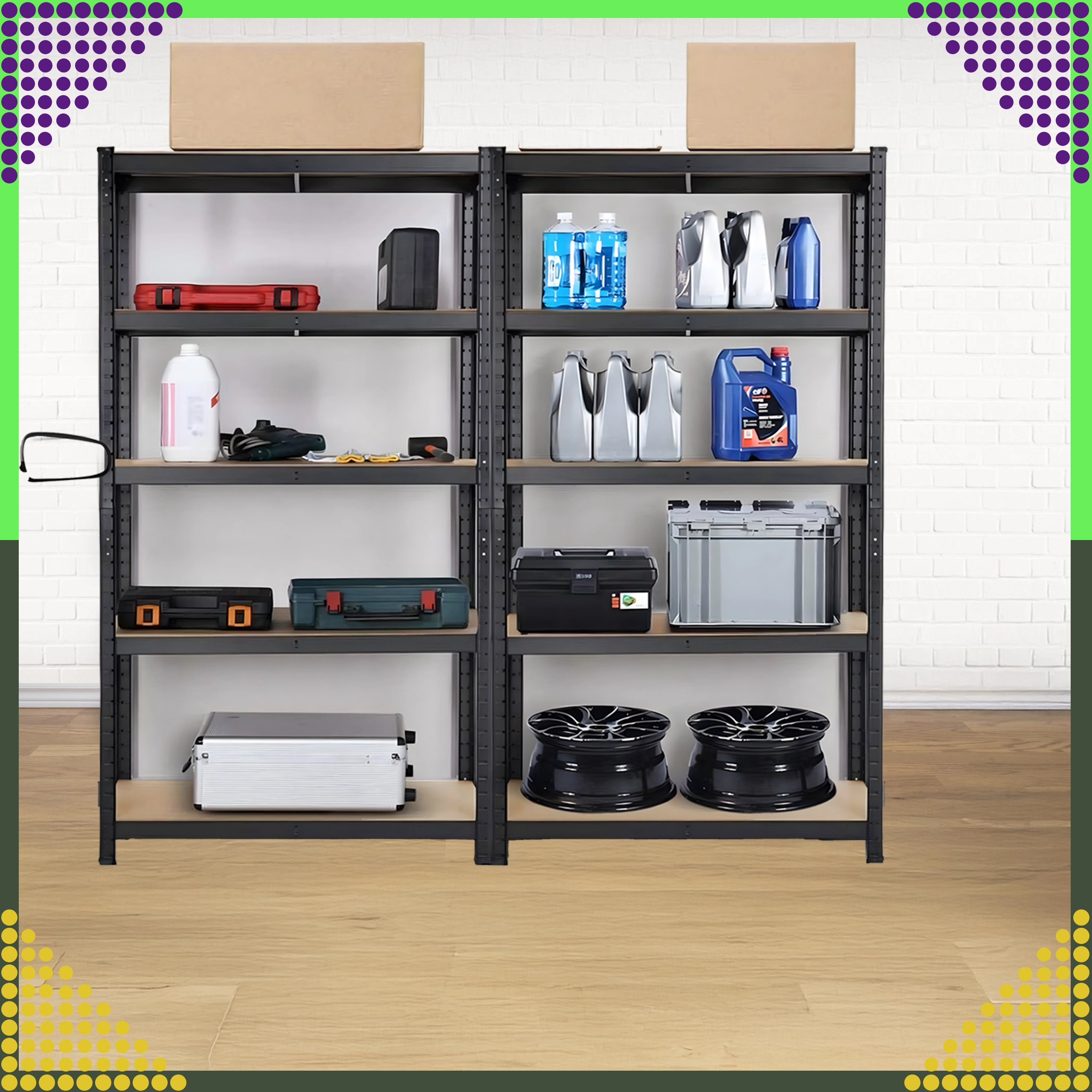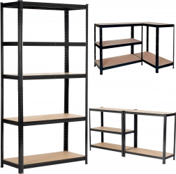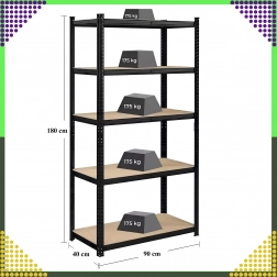 Ten solidny regał ze stalową ramą i pięcioma półkami jest idealny do garaży, warsztatów, magazynów i piwnic. Dzięki udźwigowi 175 kg na półkę bezpiecznie przechowasz ciężkie przedmioty, a kompaktowy rzut 90 × 40 cm oszczędza miejsce. Czarny kolor wygląda nowocześnie i łatwo wpasowuje się w każde otoczenie.