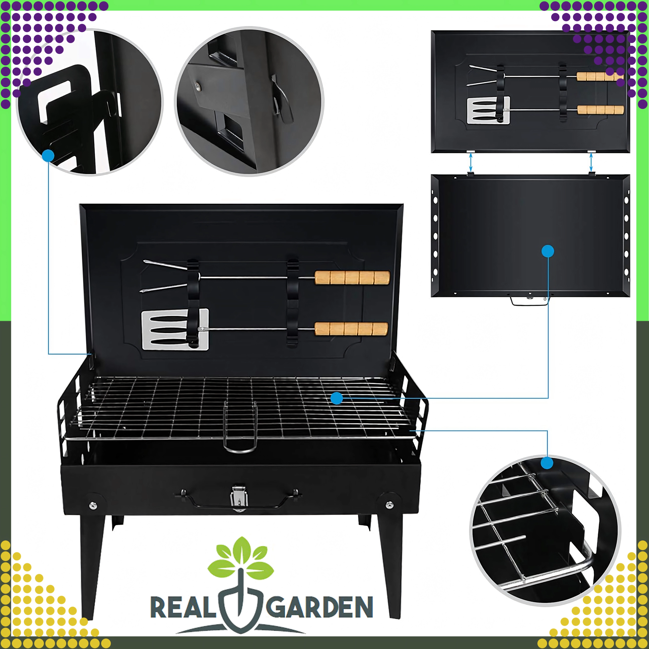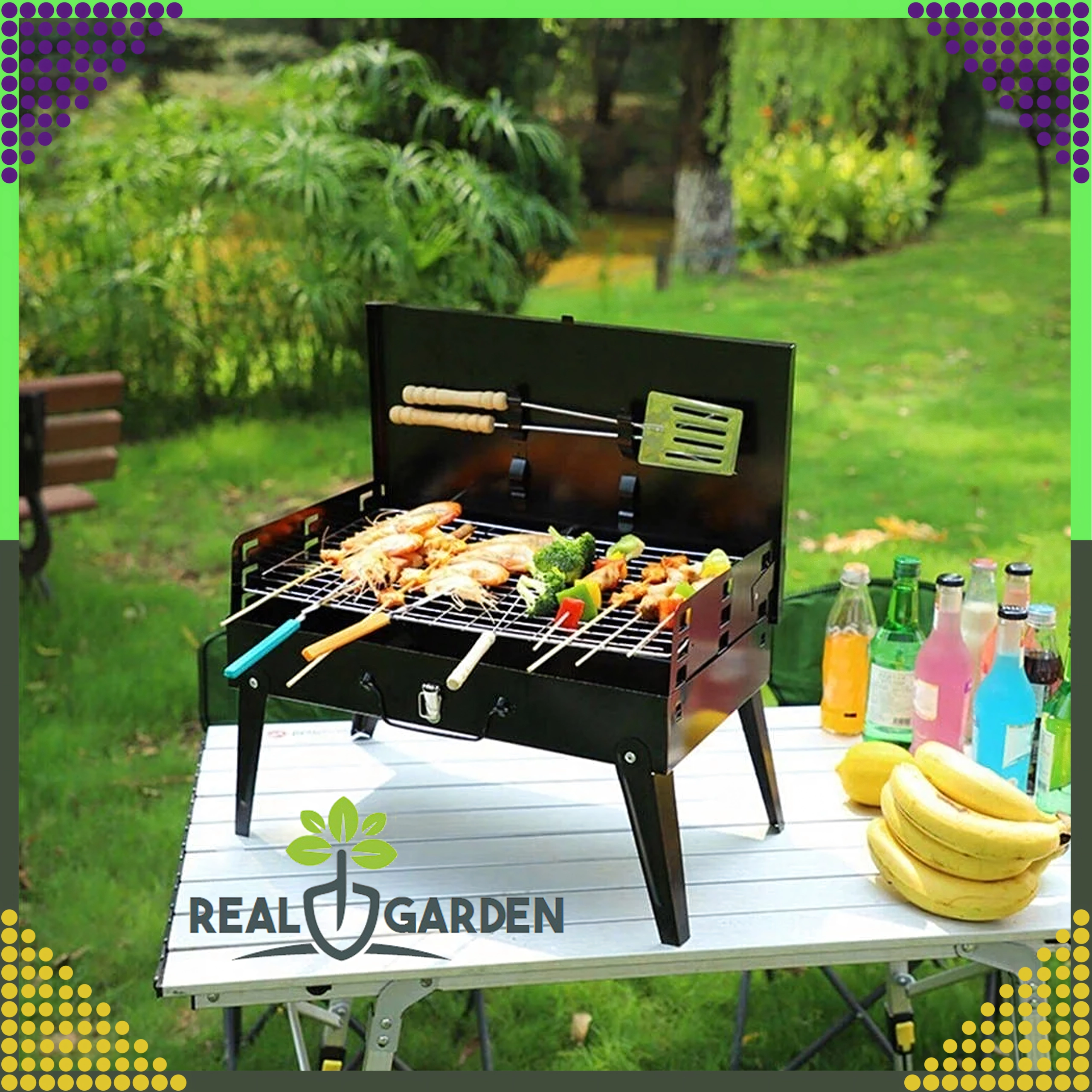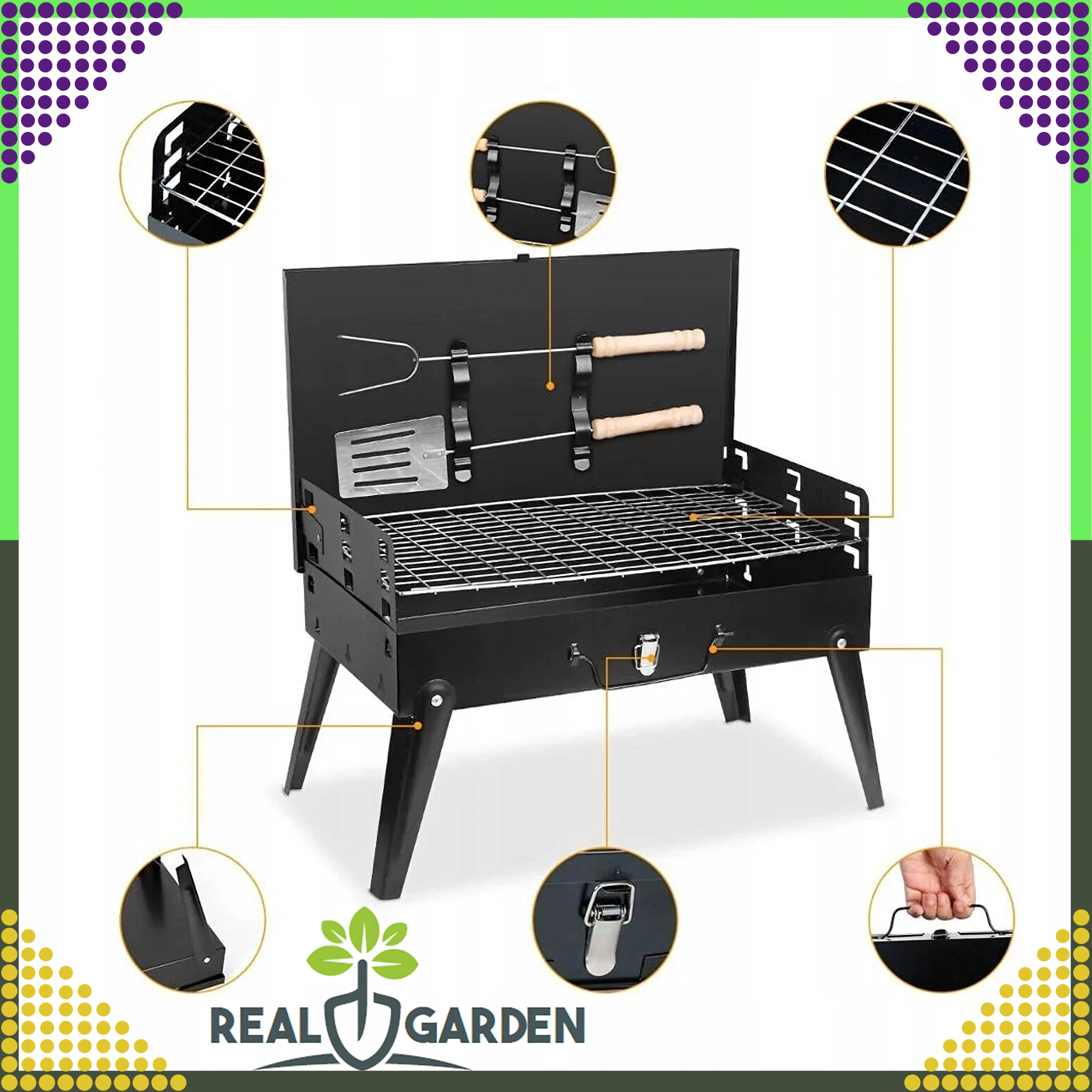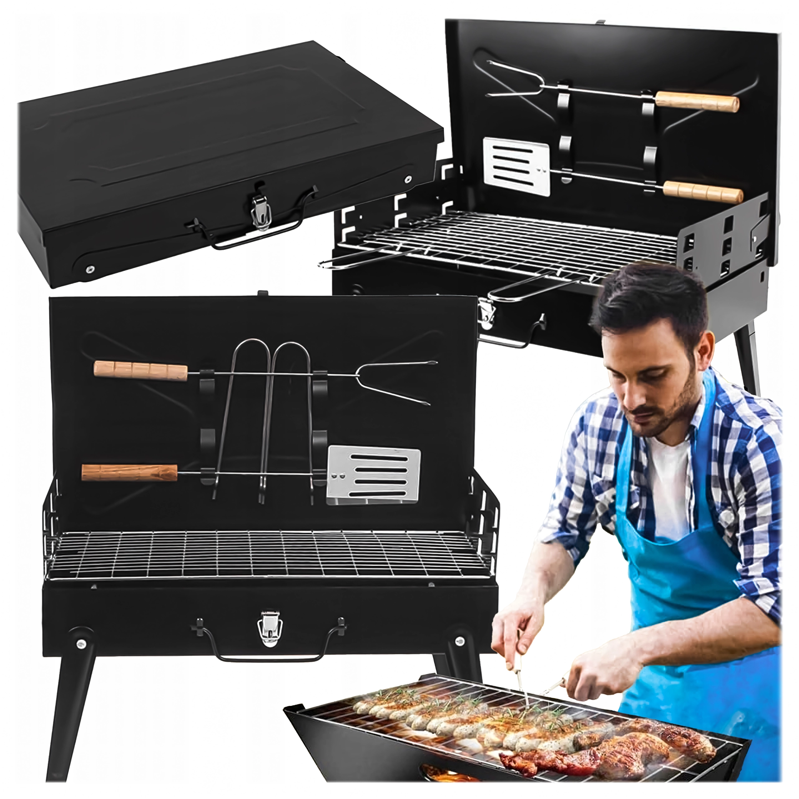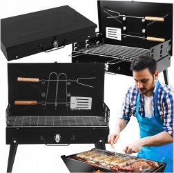Ciesz się grillowaniem gdziekolwiek dzięki temu składanemu i przenośnemu grillowi węglowemu w praktycznej formie walizki. Szybki montaż bez narzędzi, stabilna konstrukcja oraz kompaktowe wymiary 44 × 27 × 47 cm czynią go idealnym wyborem na kemping, do ogrodu i na piknik. W zestawie znajduje się ruszt oraz podstawowe narzędzia do grillowania (łopatka, szczypce, szpikulec). Otwory wentylacyjne zapewniają efektywniejsze spalanie i szybsze przygotowanie potraw.