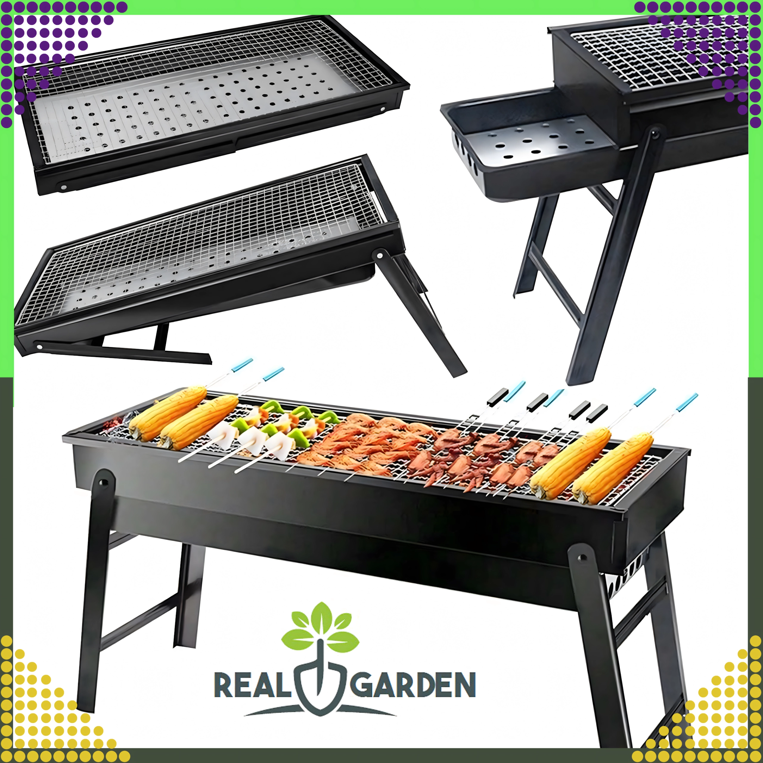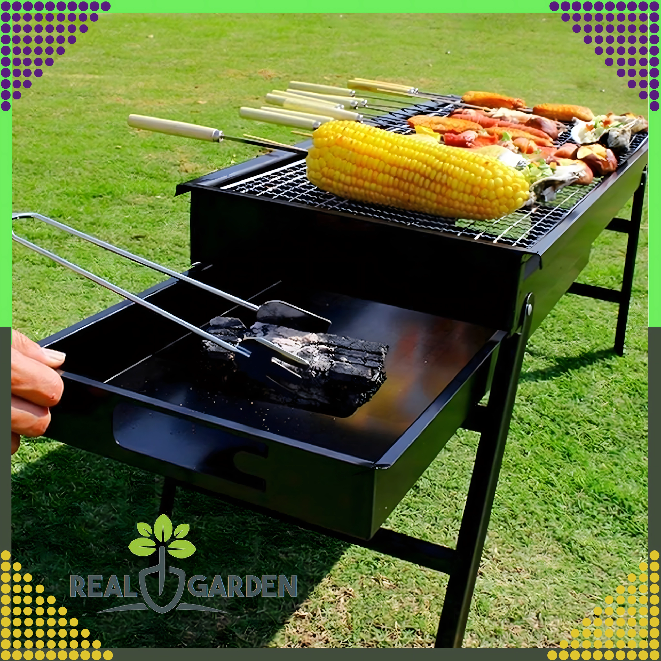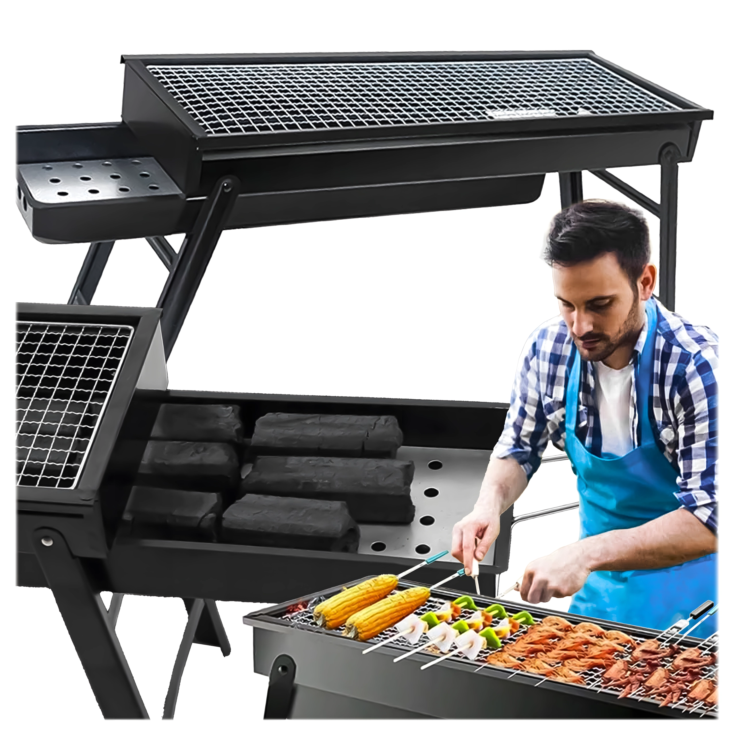 - Uniwersalne zastosowanie do szaszłyków, warzyw, ziemniaków, karkówki wieprzowej, piersi z kurczaka, ryb czy faszerowanych pieczarek.