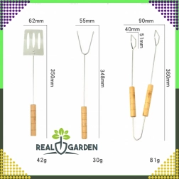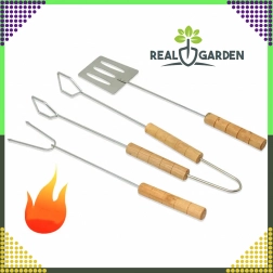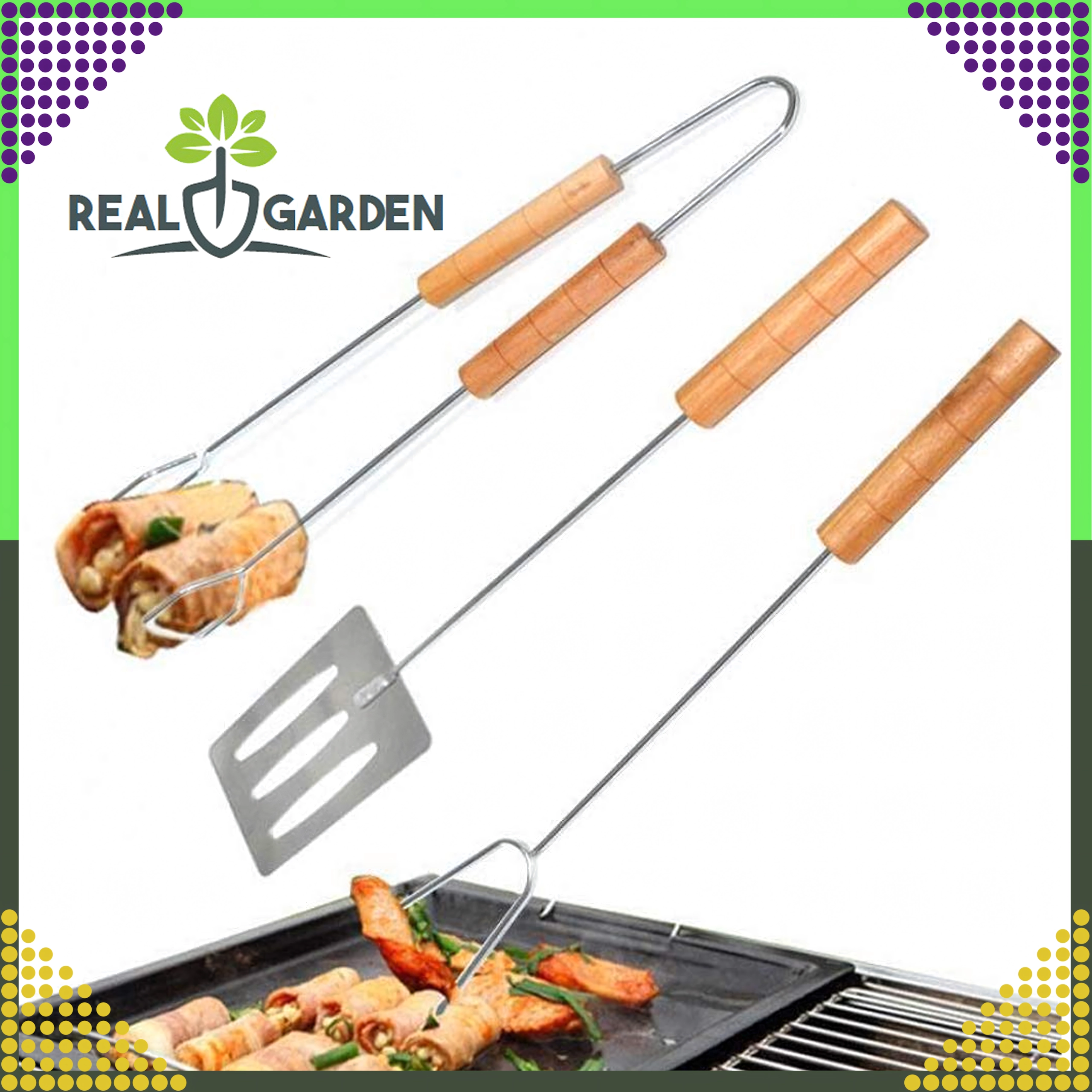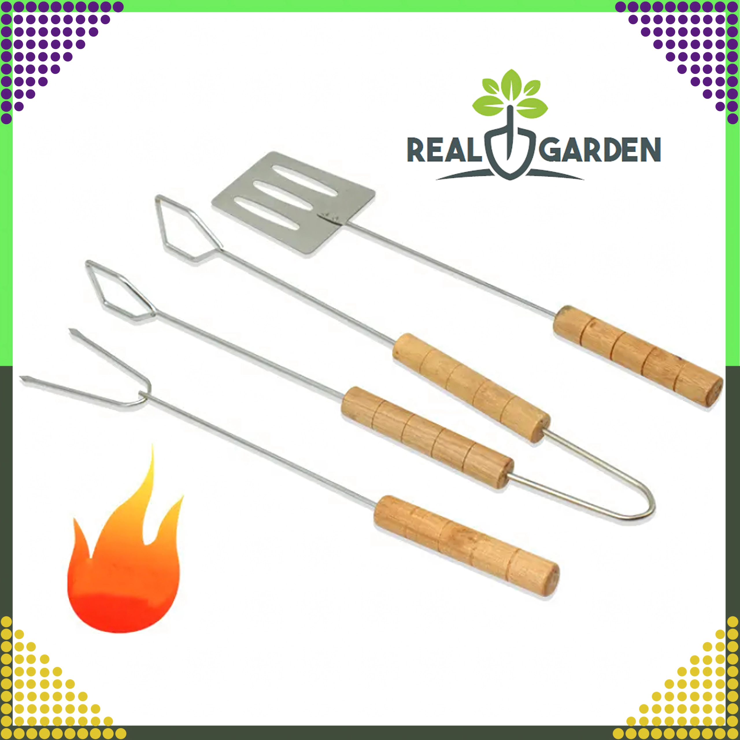 Praktyczny zestaw narzędzi do grilla 3w1 sprawi, że każde grillowanie będzie przyjemnością. Zawiera szczypce, łopatkę i widelec ze stali nierdzewnej z wygodnymi, drewnianymi rękojeściami zapewniającymi pewny chwyt i bezpieczną obsługę podczas przygotowywania mięsa i warzyw.