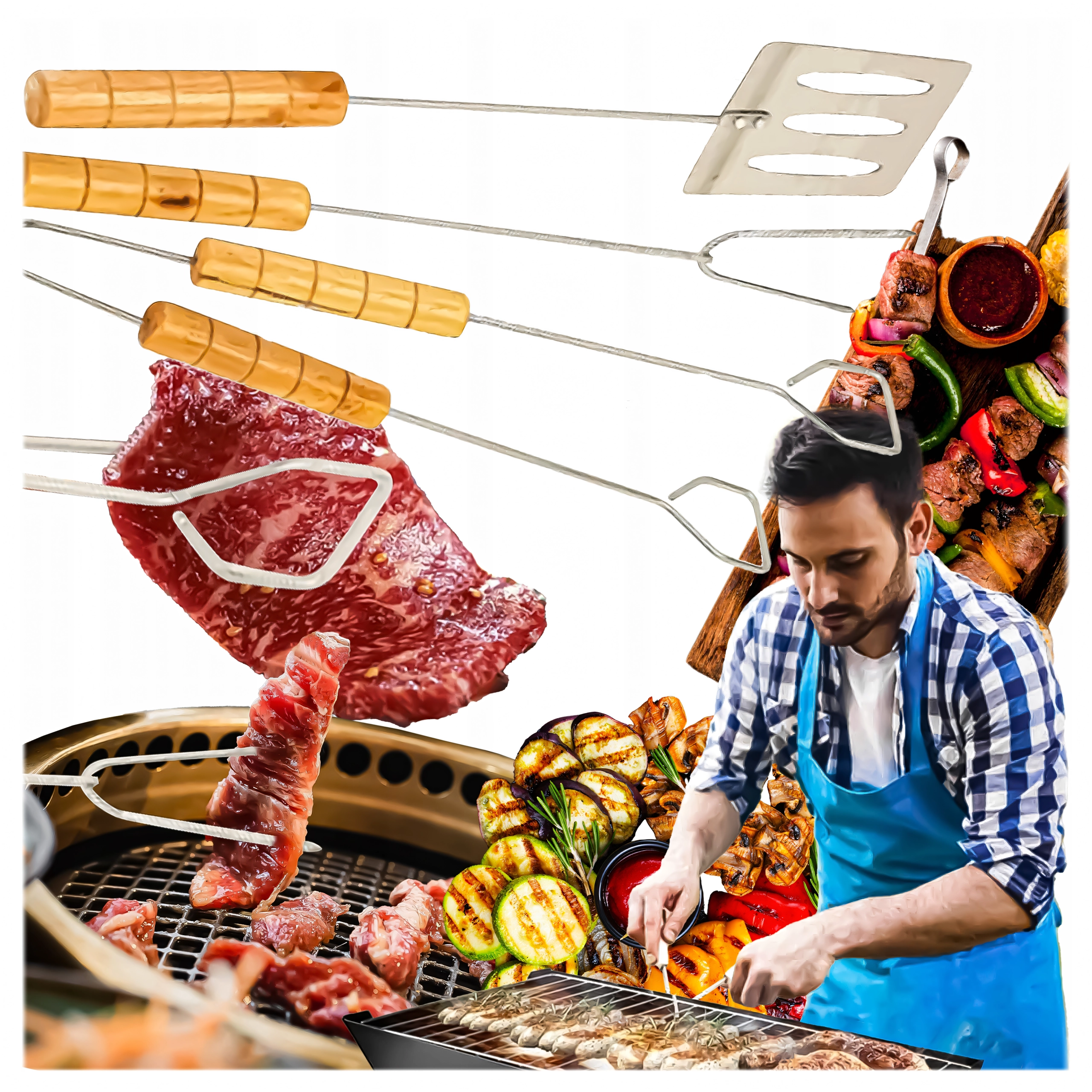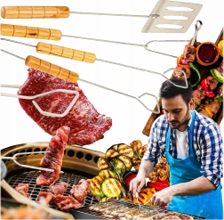 Ten uniwersalny zestaw jest idealny dla każdego miłośnika grillowania. Wysokiej jakości stal nierdzewna gwarantuje trwałość i łatwą pielęgnację, a drewniane, ergonomicznie ukształtowane rękojeści zapewniają komfort nawet przy dłuższym użytkowaniu. Przygotuj burgery, szaszłyki czy warzywa jak profesjonalista – łatwo i z pełną kontrolą.