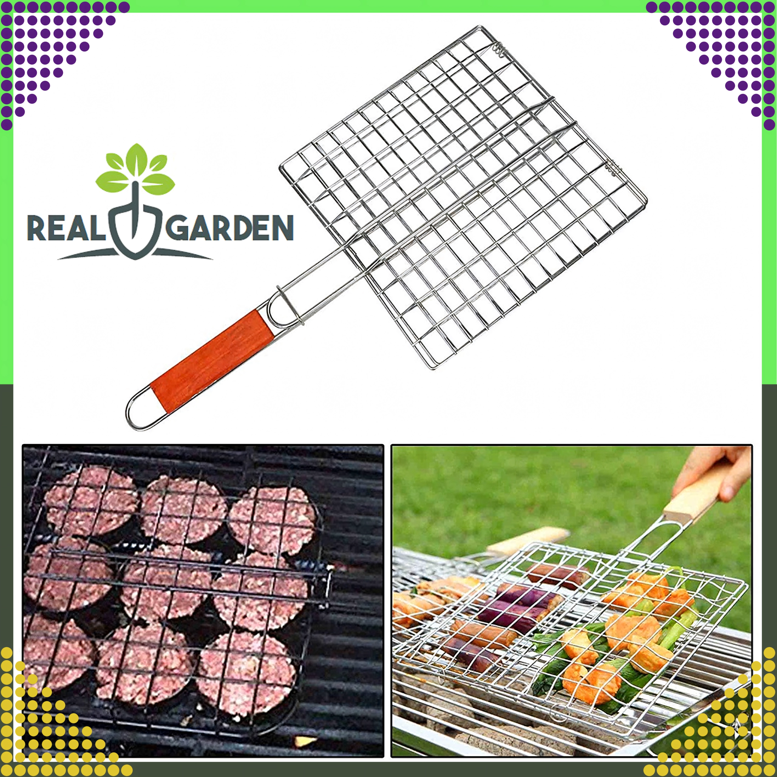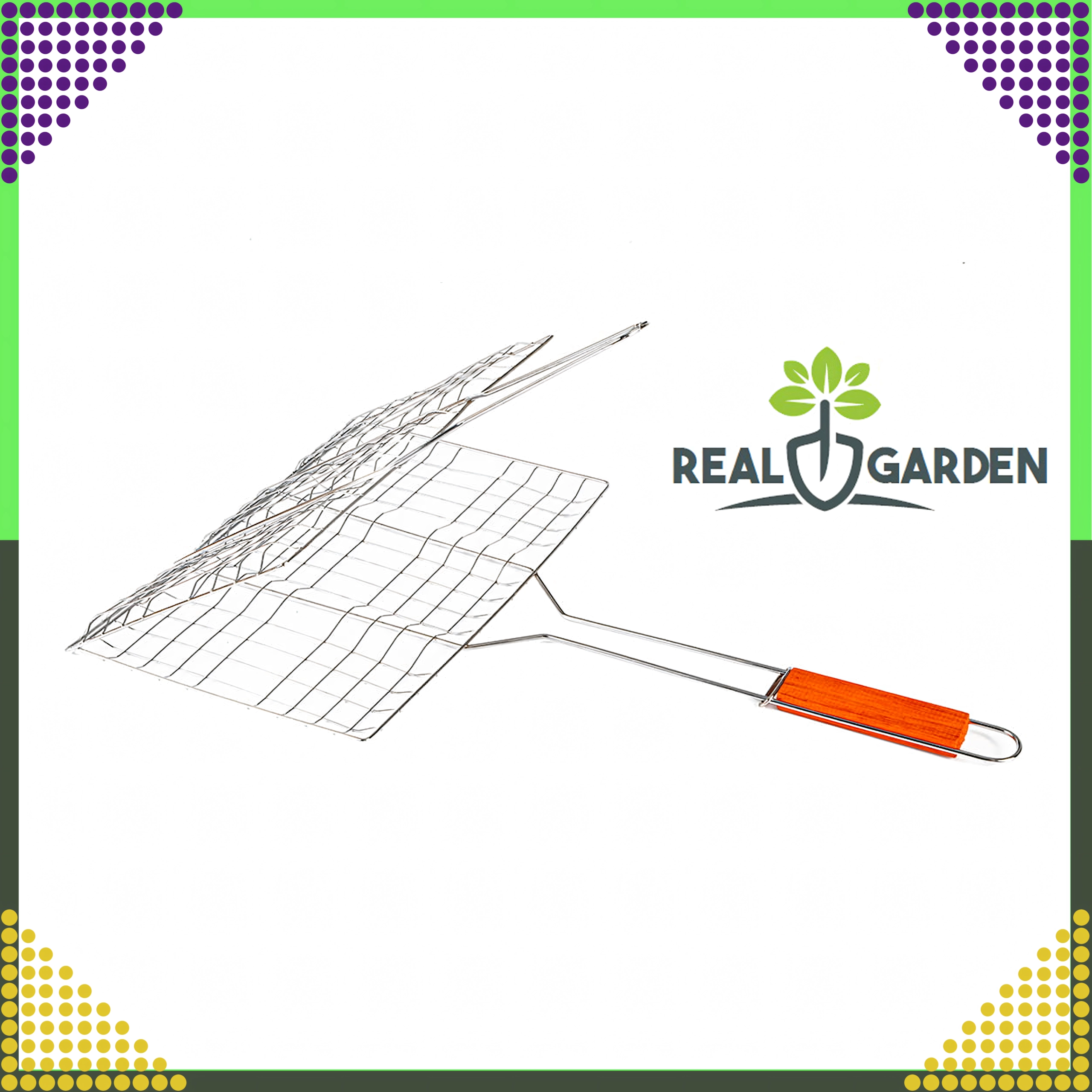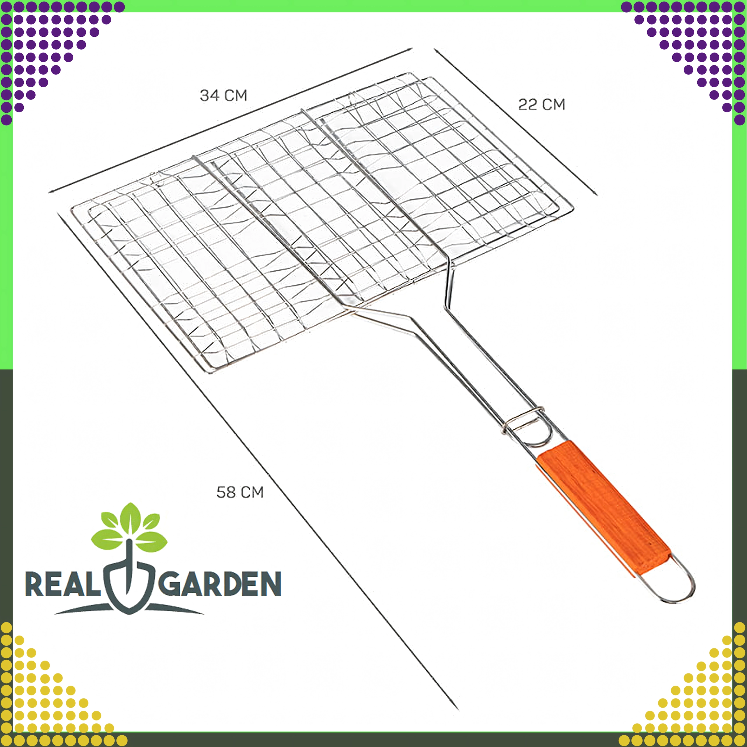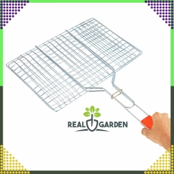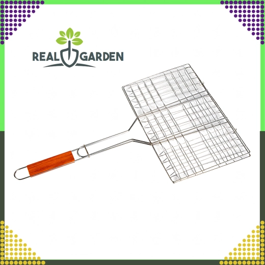 Praktyczny dwustronny ruszt do grillowania z zamykaną kratką i drewnianym uchwytem dla bezpiecznego i wygodnego obracania. Idealny do burgerów, mięsa, ryb i warzyw. Chromowana powierzchnia ułatwia czyszczenie, a stabilny zacisk zapobiega rozpadaniu się produktów podczas grillowania.