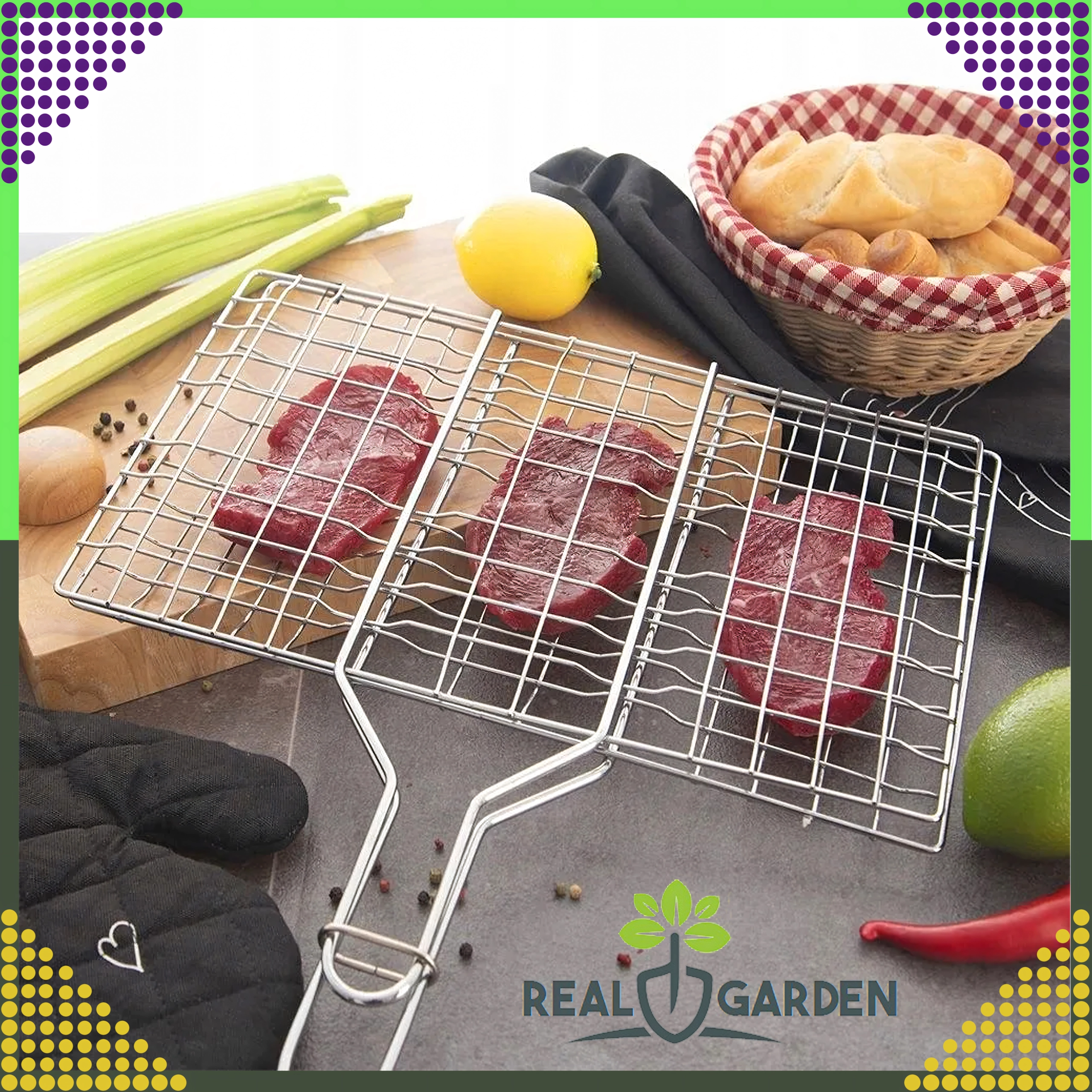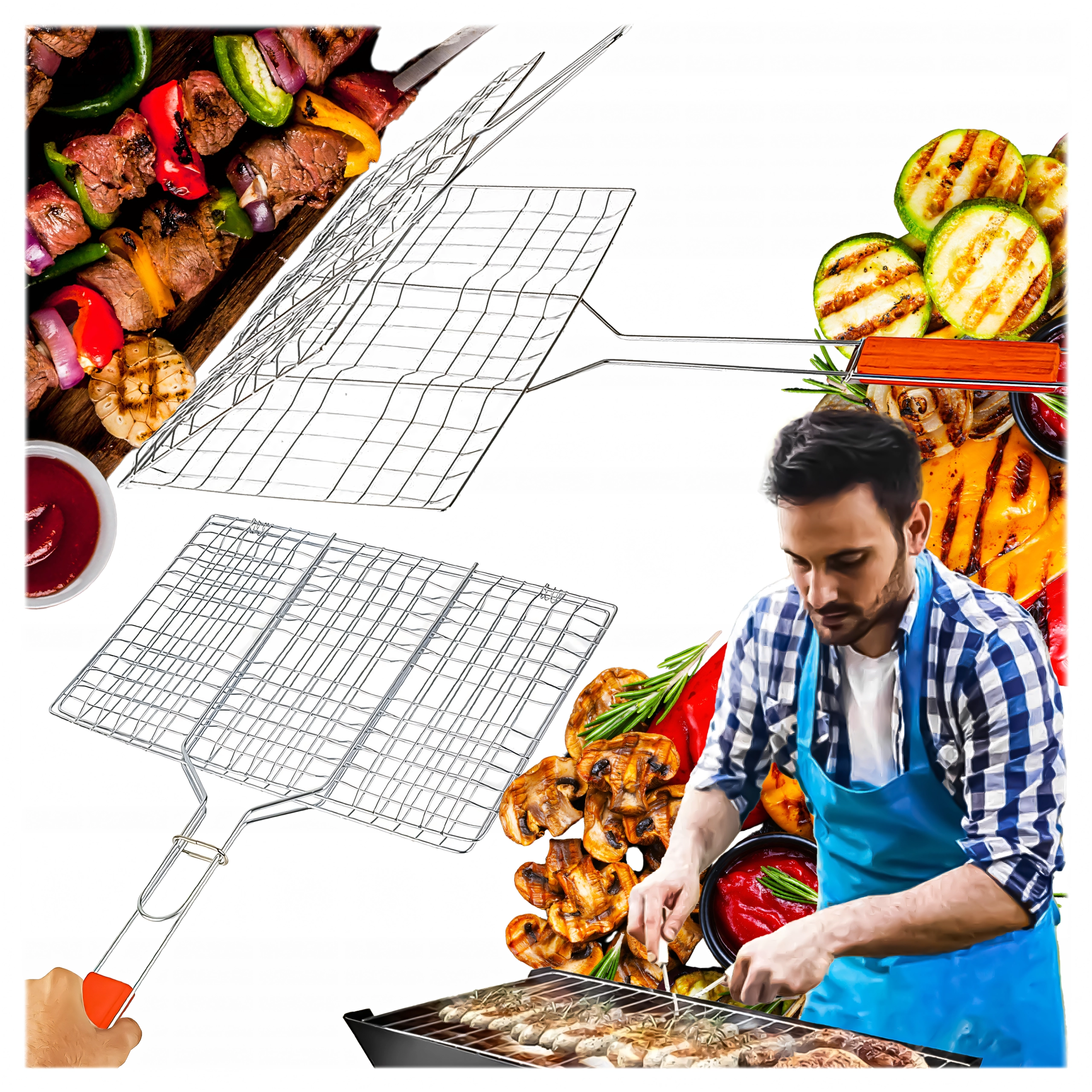 - Dwustronny składany ruszt do grillowania z zamykaną kratką