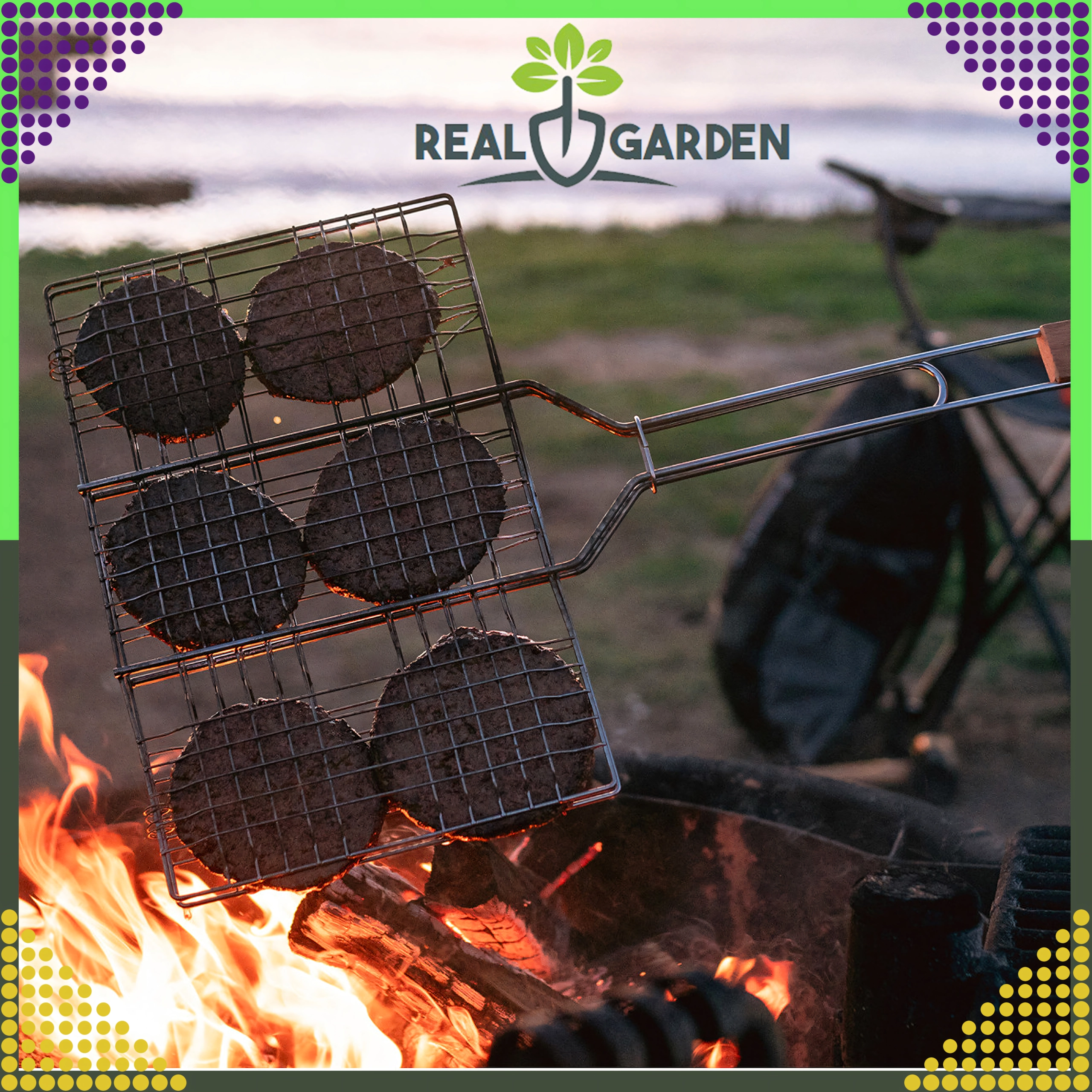 Koniec z rozpadającymi się porcjami i przypalaniem – ten dwustronny ruszt z zamykaną kratką pewnie utrzymuje jedzenie na miejscu i pozwala wygodnie obracać całość jednocześnie dzięki ergonomicznemu drewnianemu uchwytowi. To świetny wybór do grillowania w ogrodzie, na działce i podczas biwakowania.