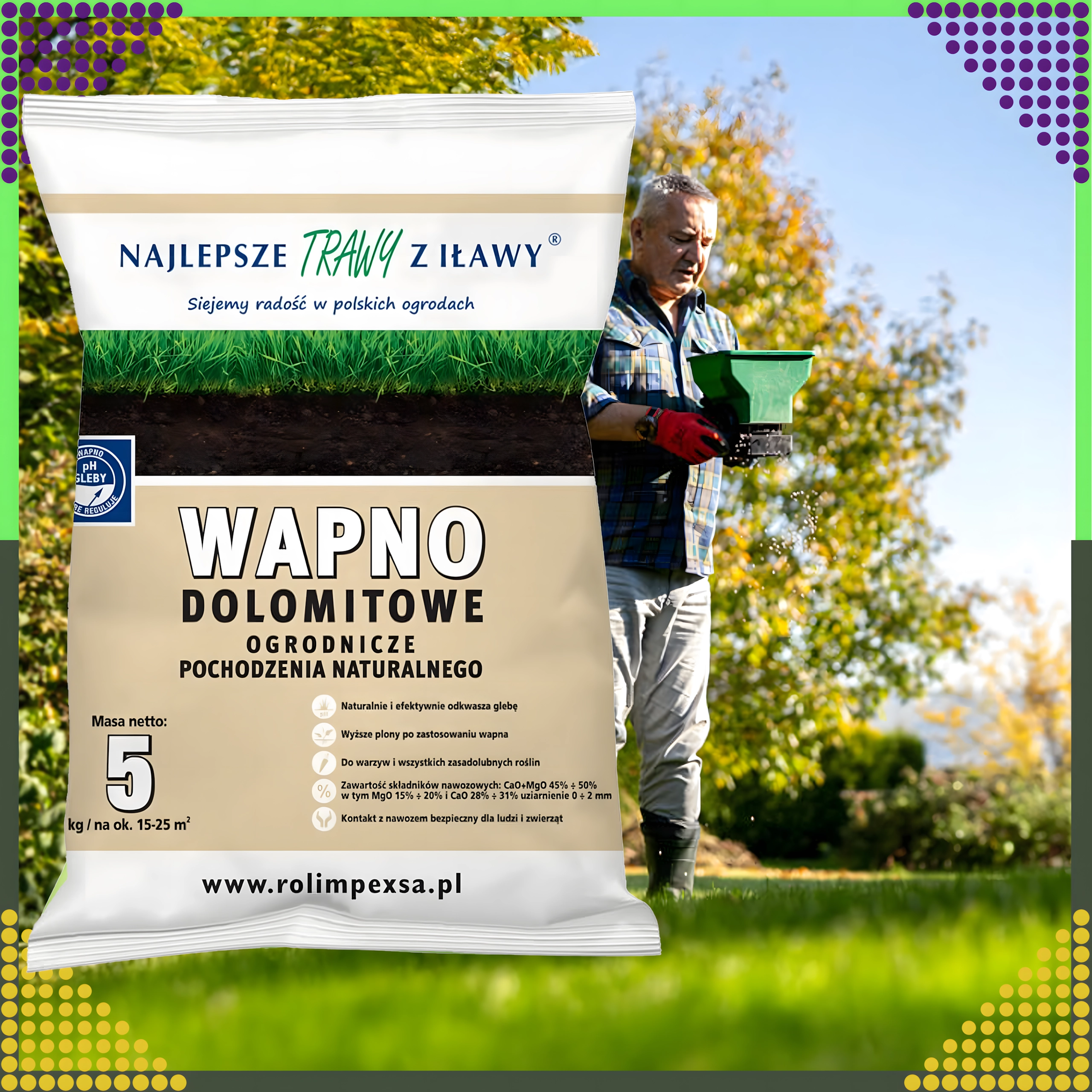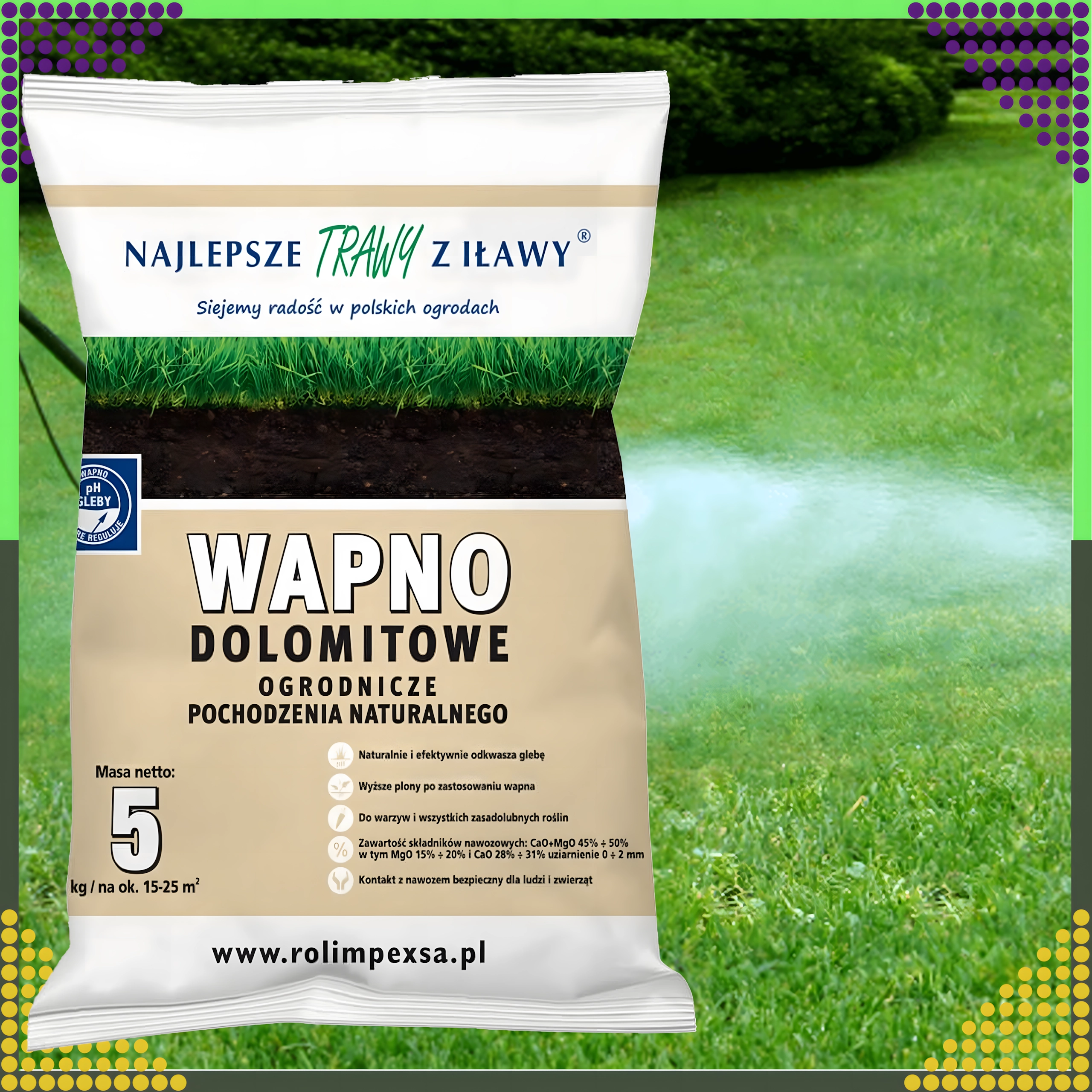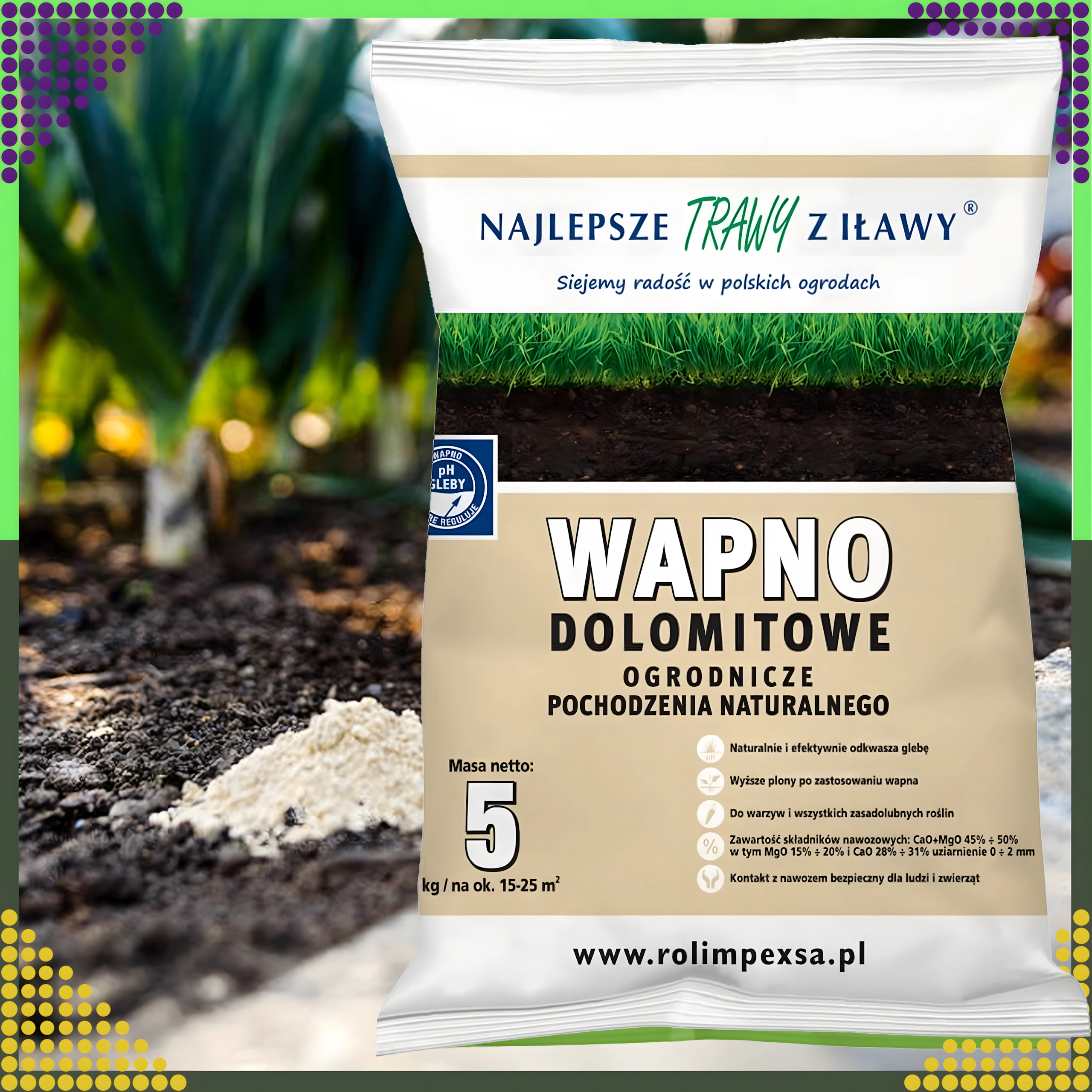 Zwiększ żyzność i witalność gleby dzięki naturalnemu wapnu dolomitowemu w praktycznym opakowaniu 5 kg. Ten ekologiczny preparat magnezowy skutecznie obniża kwasowość gleby, poprawia jej strukturę chemiczną i fizyczną, a jednocześnie dostarcza ważne mikroelementy dla zdrowego wzrostu roślin.
