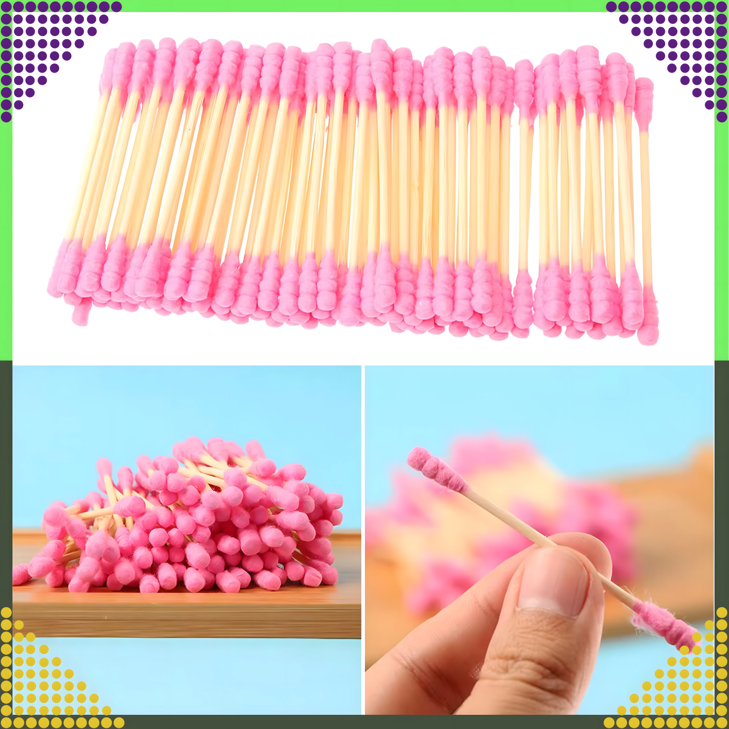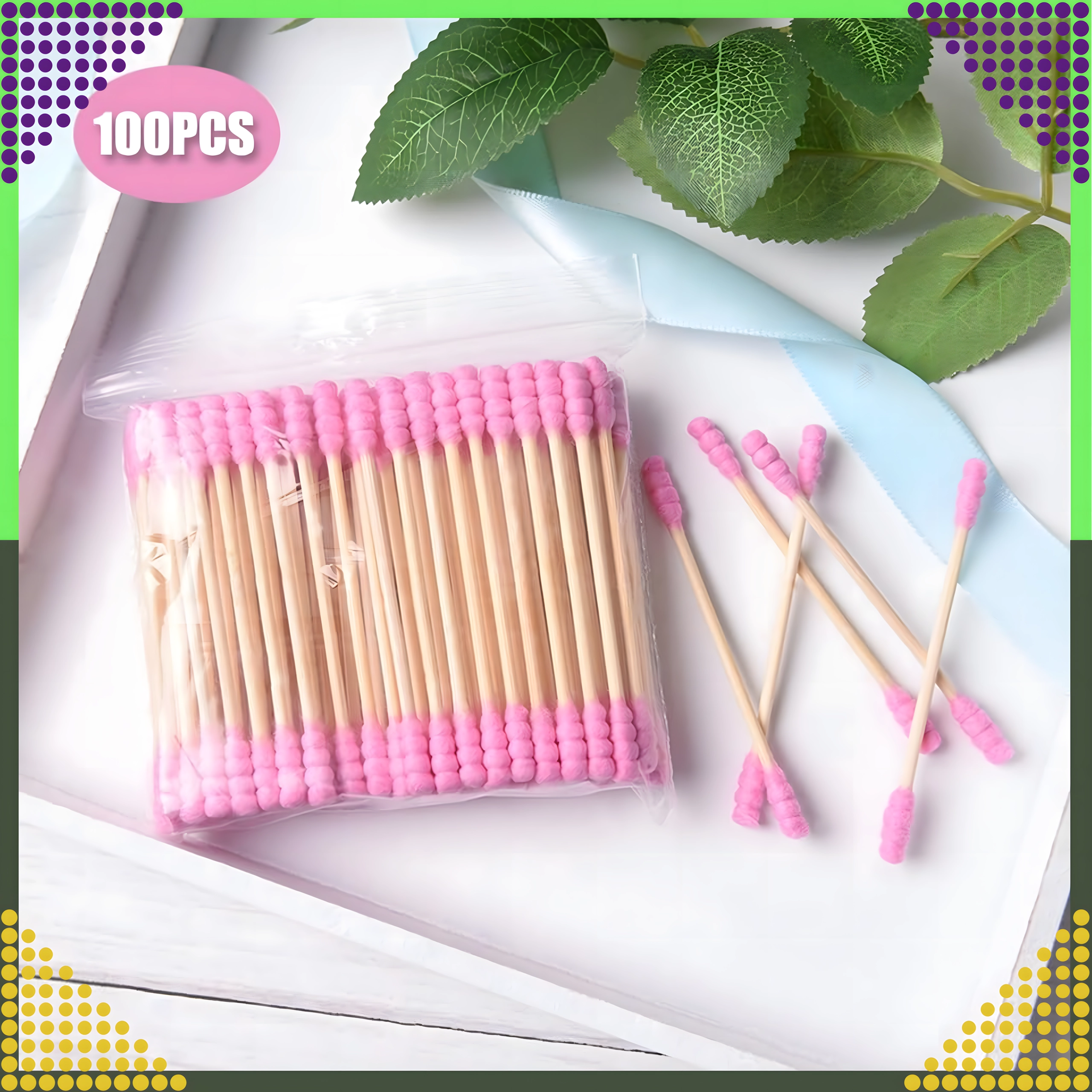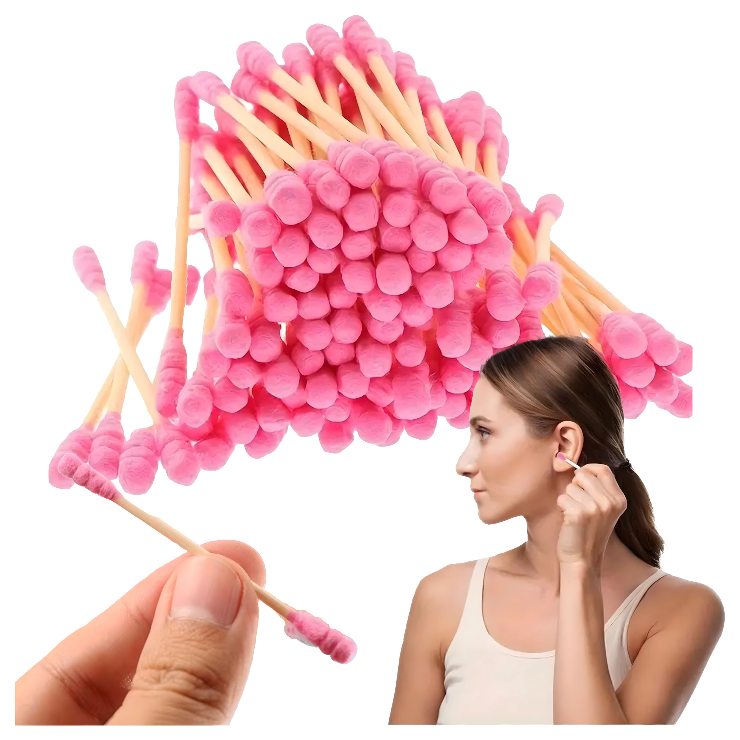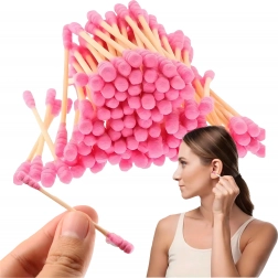 Praktyczne różowe patyczki łączą naturalny wygląd i funkcjonalność. Drewniany/bambusowy trzonek zapewnia pewny chwyt i precyzyjną manipulację, a miękkie bawełniane końcówki są delikatne dla wrażliwych miejsc. Patyczki sprawdzą się w łazience, kosmetyczce i w podróży.