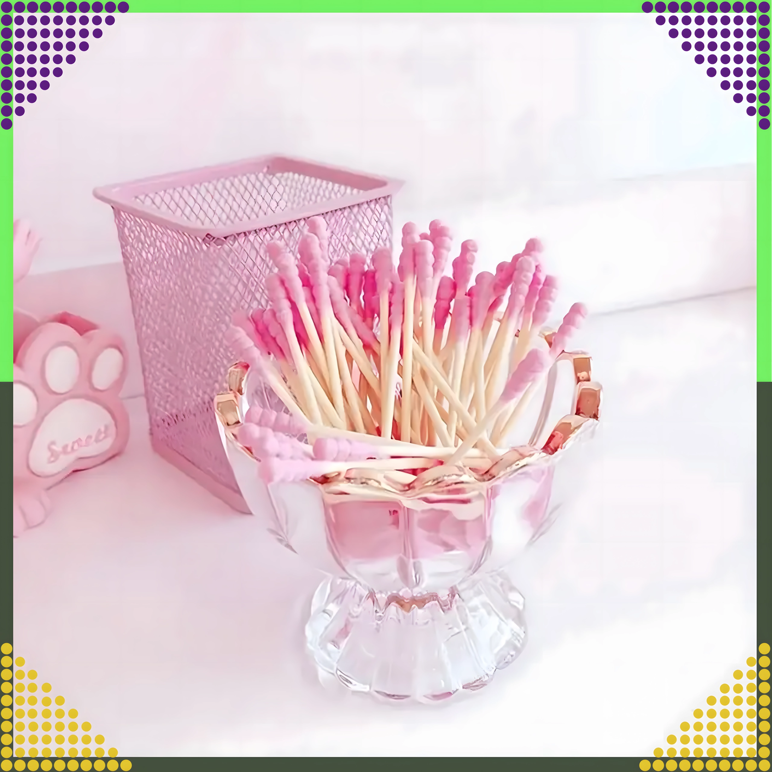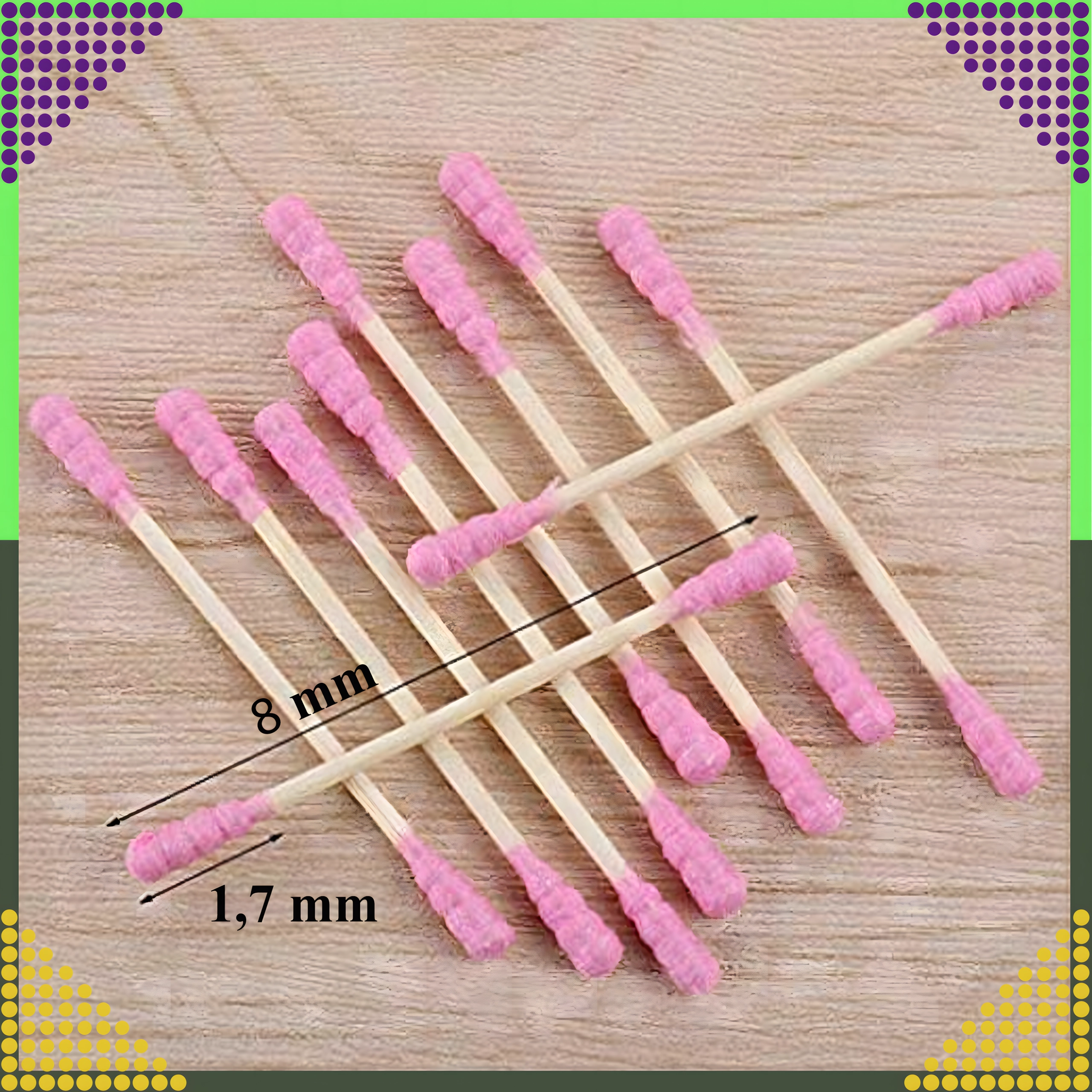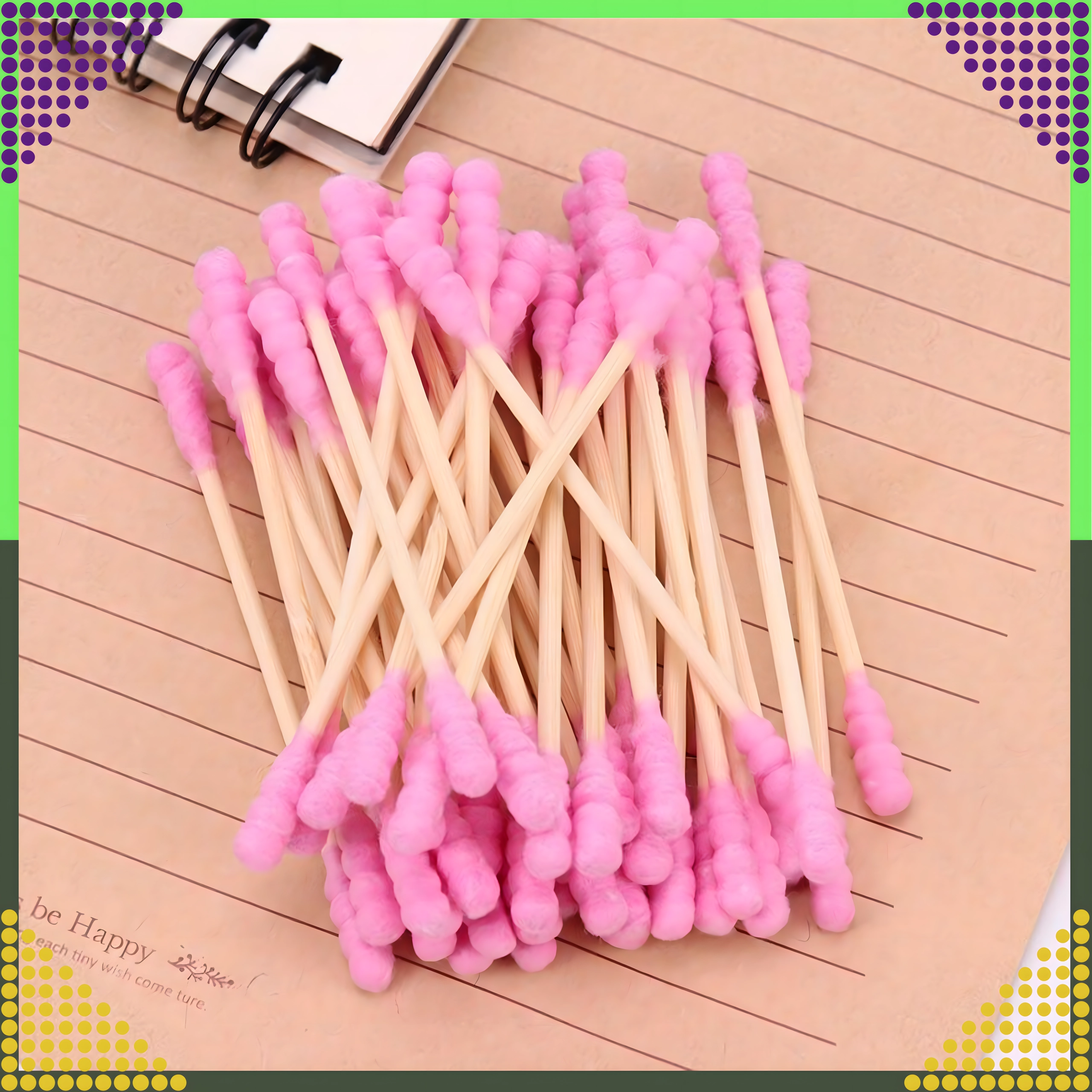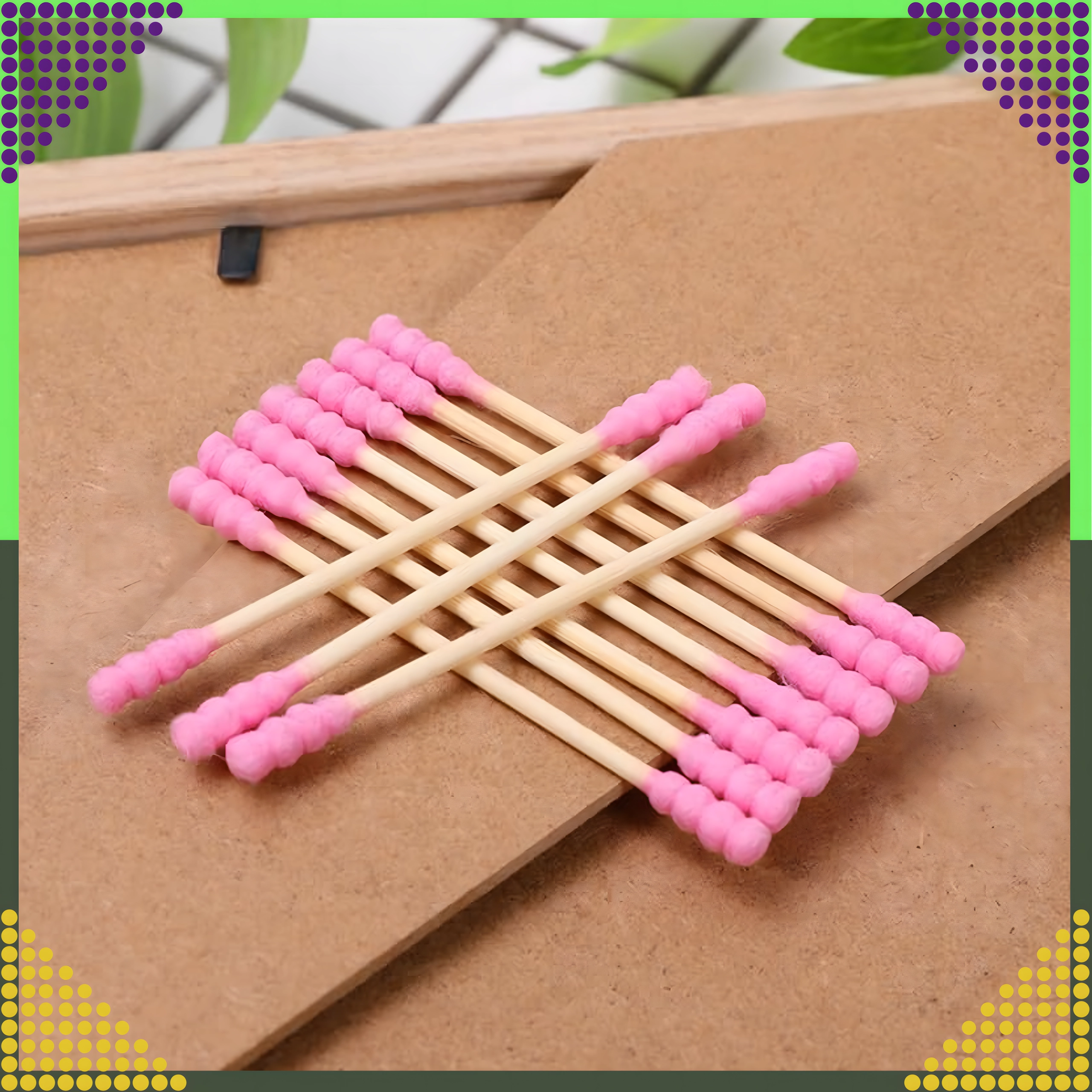 Praktyczne różowe patyczki łączą naturalny wygląd i funkcjonalność. Drewniany/bambusowy trzonek zapewnia pewny chwyt i precyzyjną manipulację, a miękkie bawełniane końcówki są delikatne dla wrażliwych miejsc. Patyczki sprawdzą się w łazience, kosmetyczce i w podróży.
